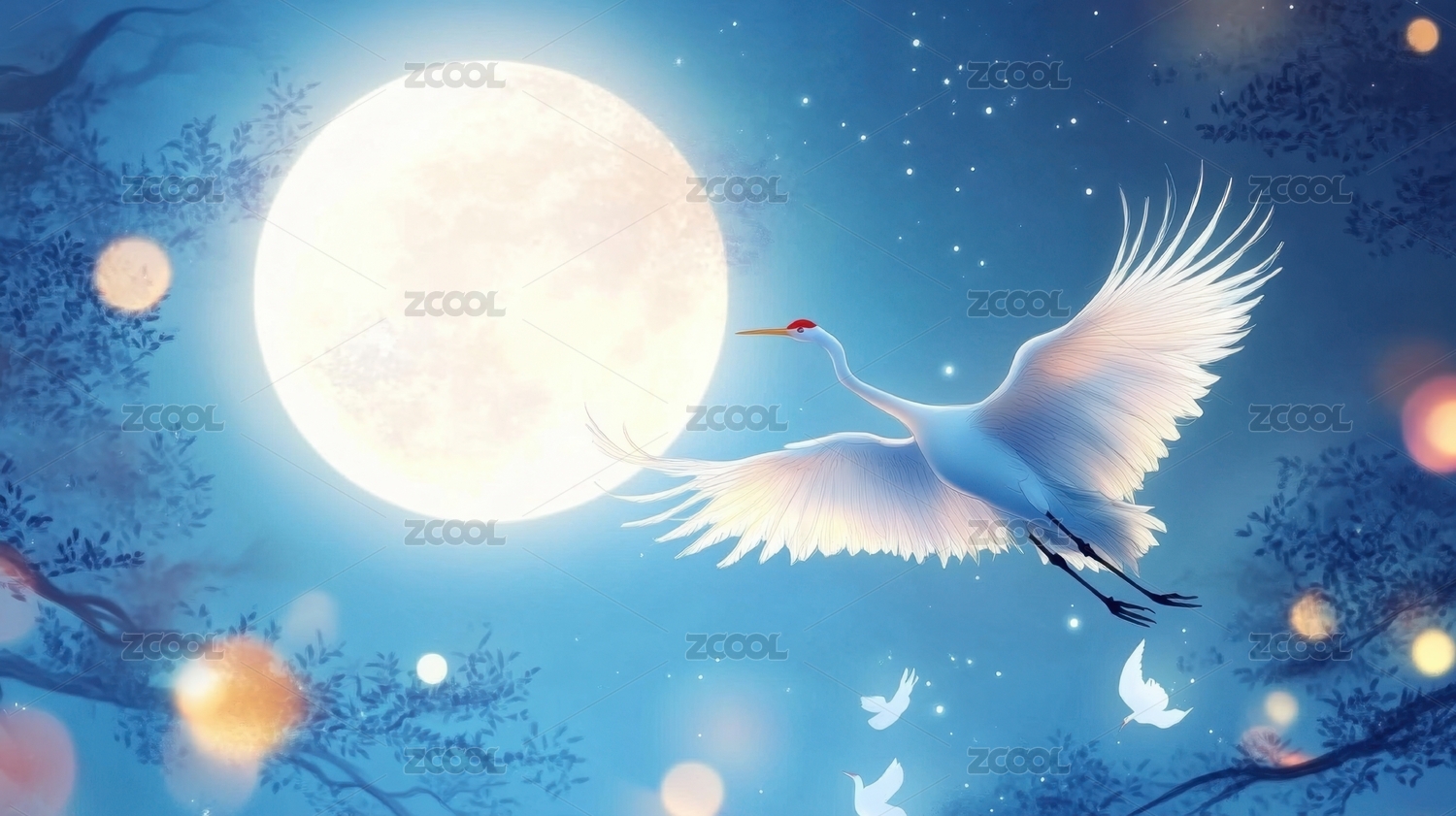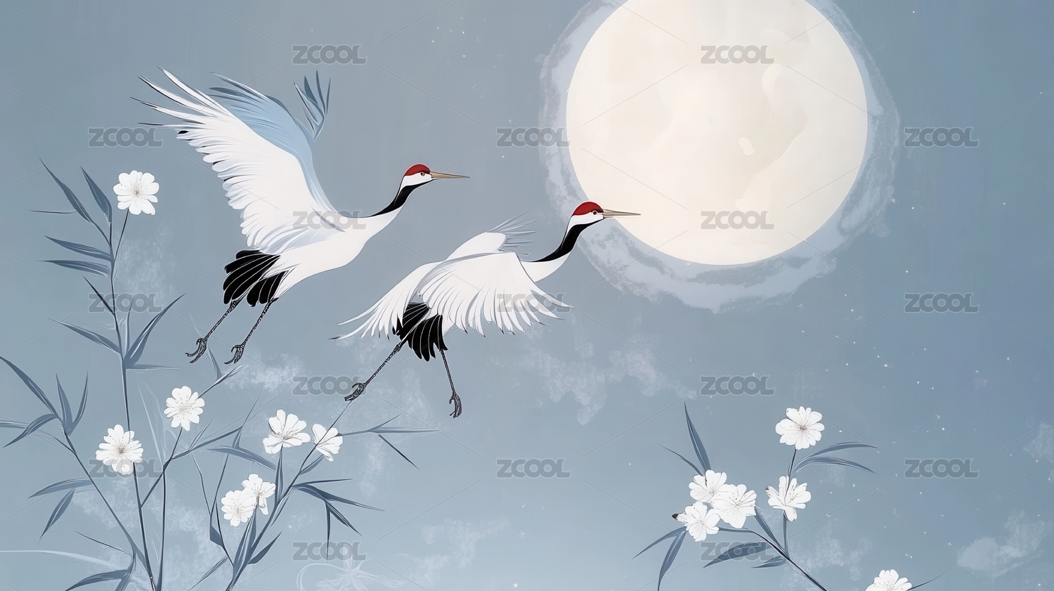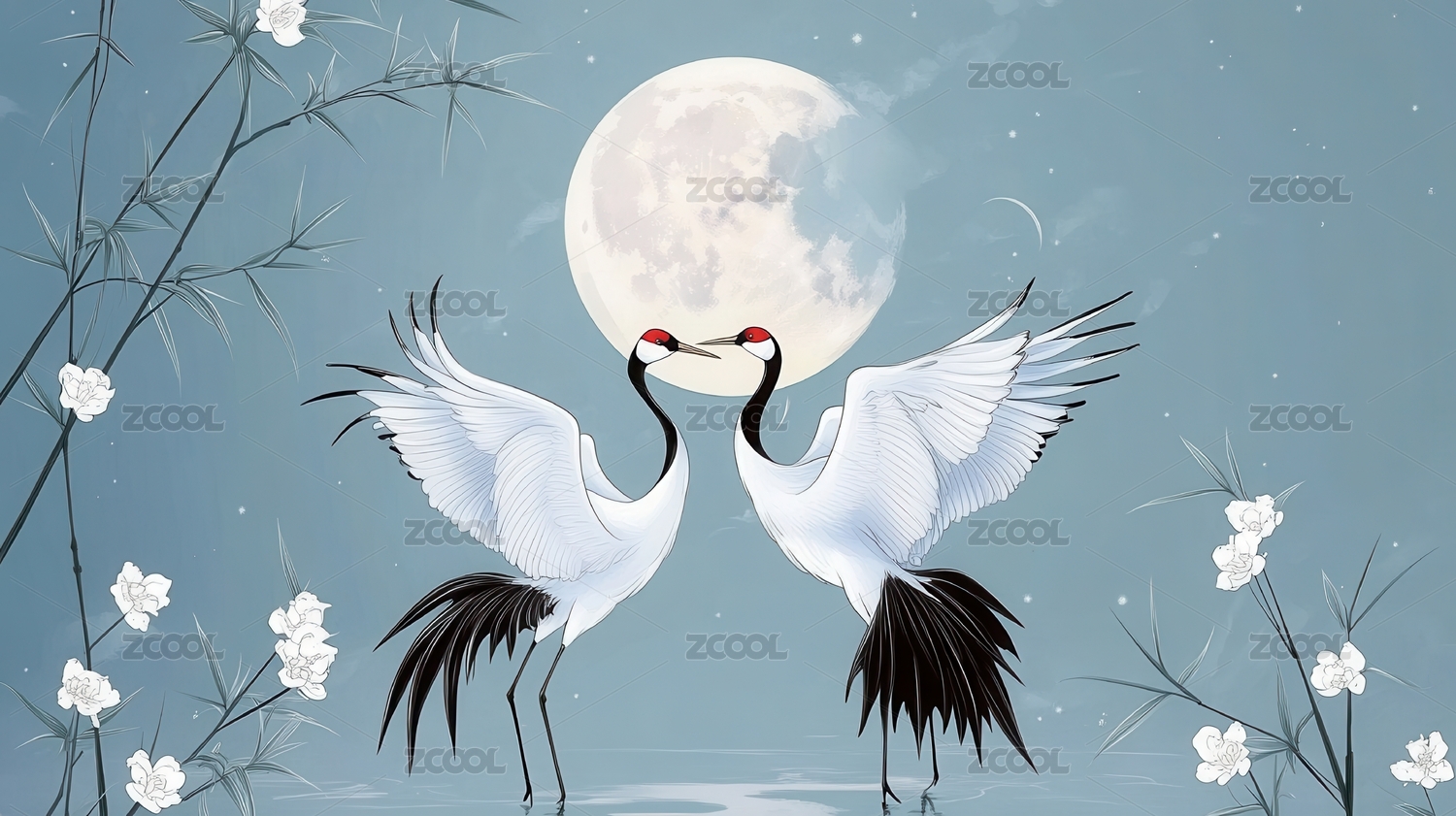 重阳节主题背景仙鹤丹顶鹤中国风国画工笔画
