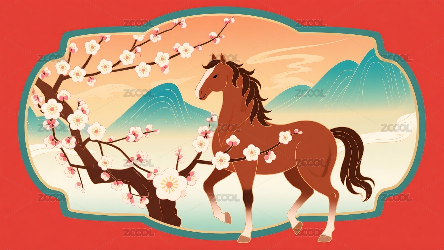 马年国风插画背景