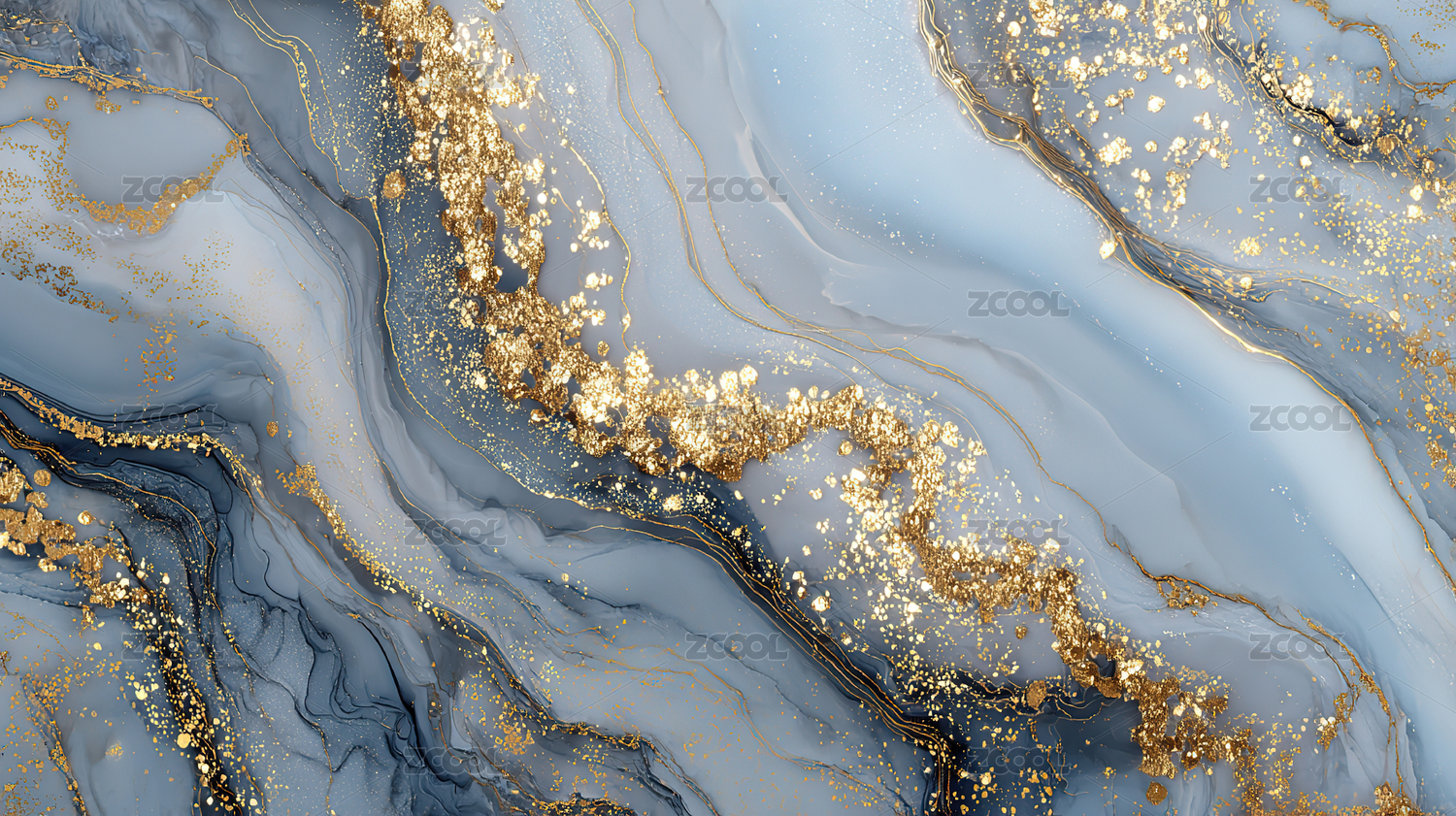 金色点缀的蓝灰抽象艺术图案