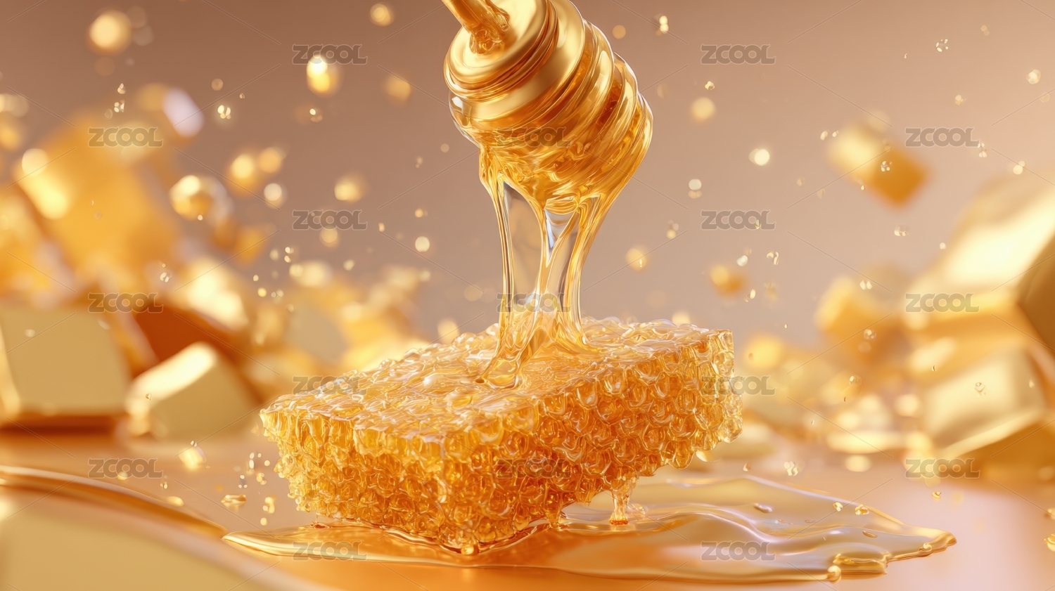 金色,3D,食物,自然,美学,美味,健康,甜点,蜂蜜,流动