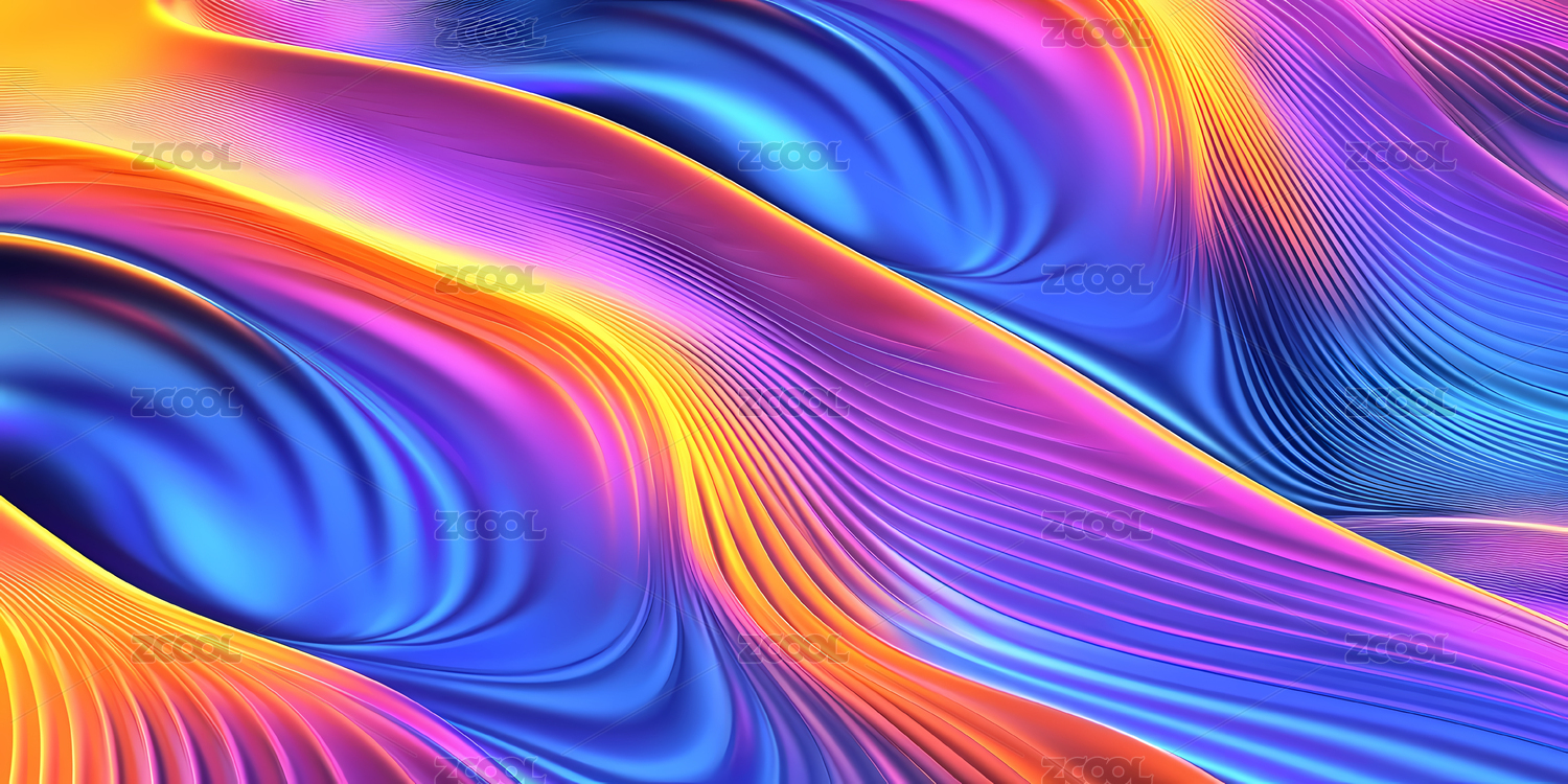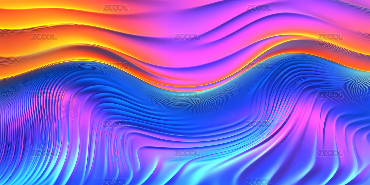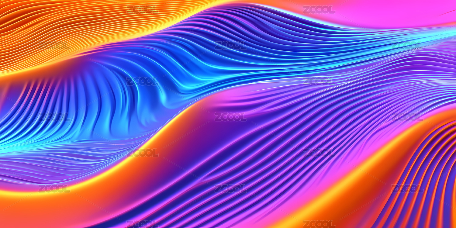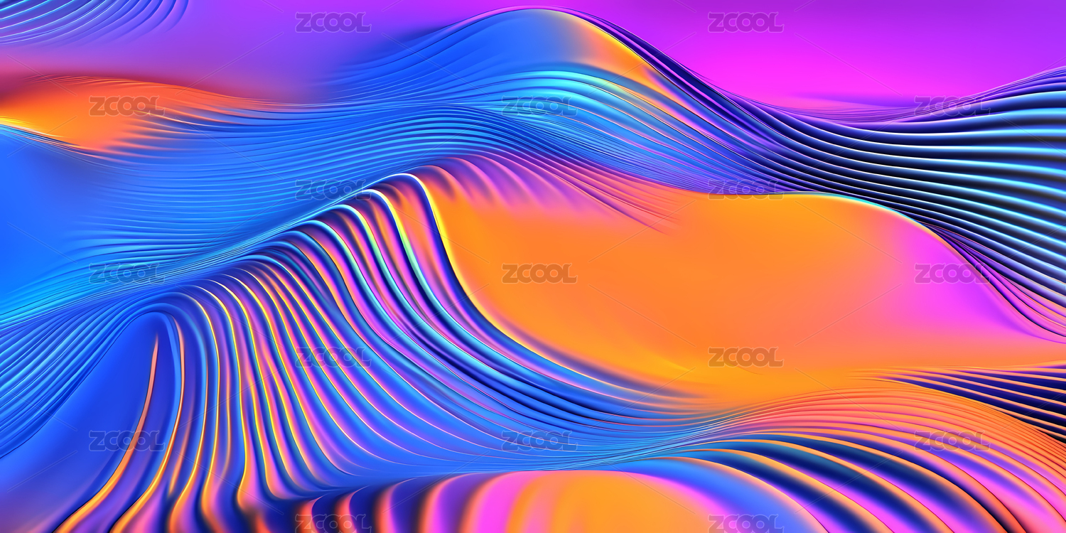 3D渲染色彩丰富的波浪形状抽象概念创意背景