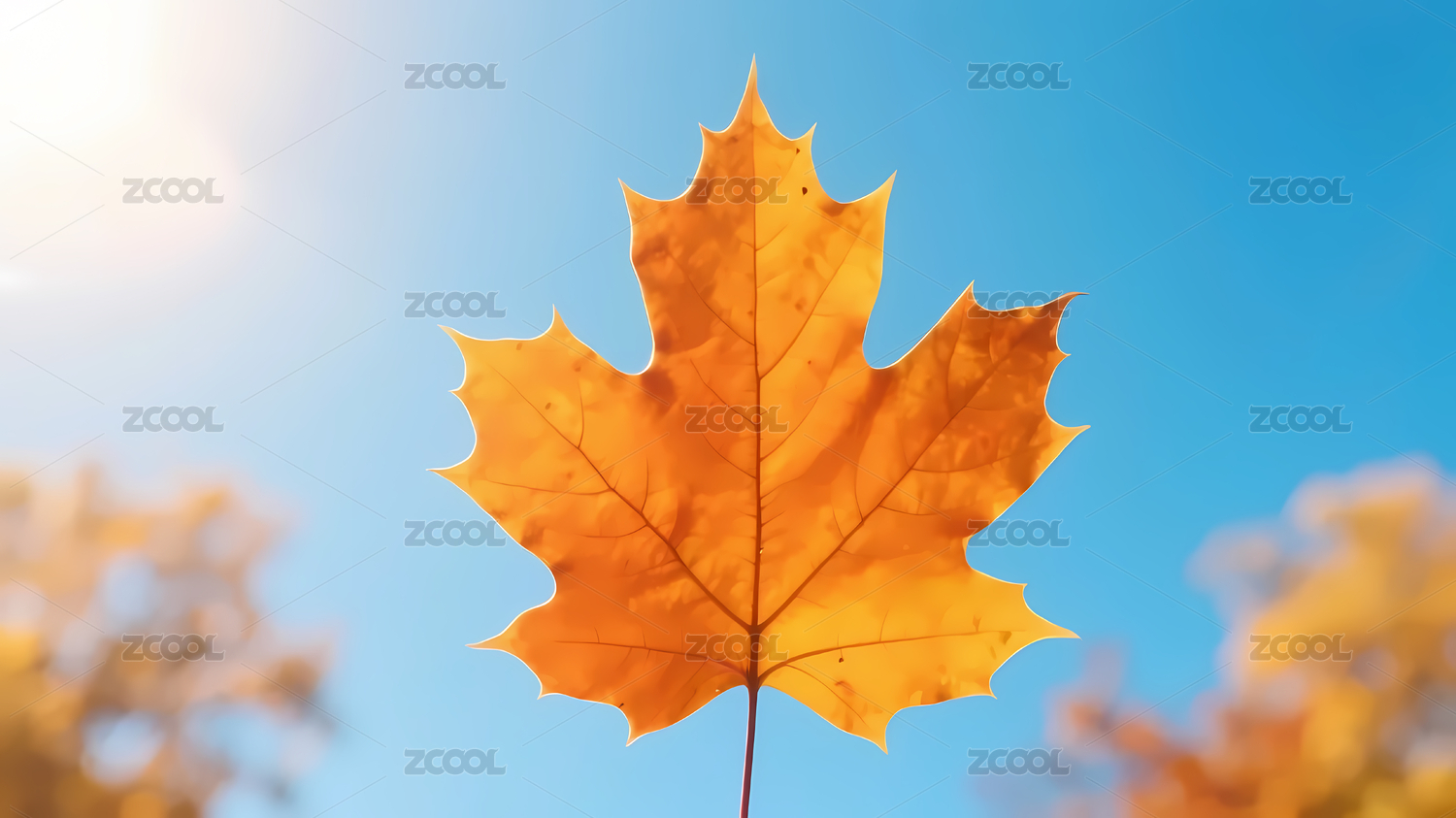 橙黄枫叶映衬蓝天白云
