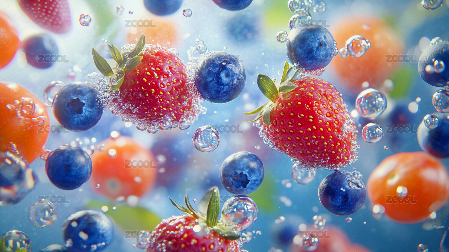 草莓,蓝莓,水果,浆果,新鲜,健康,水花,飞溅,清凉,夏季