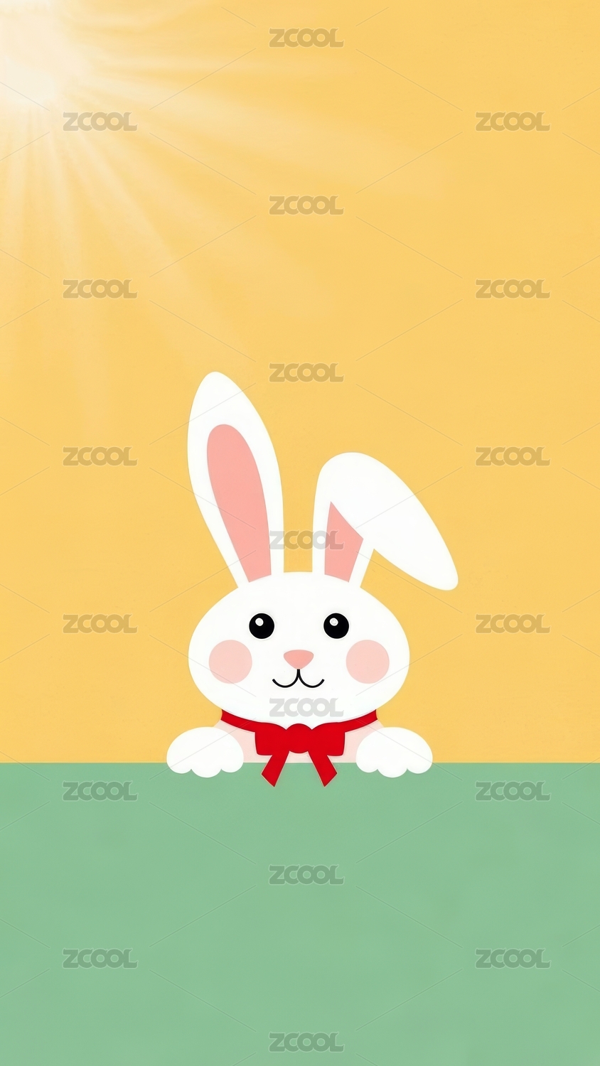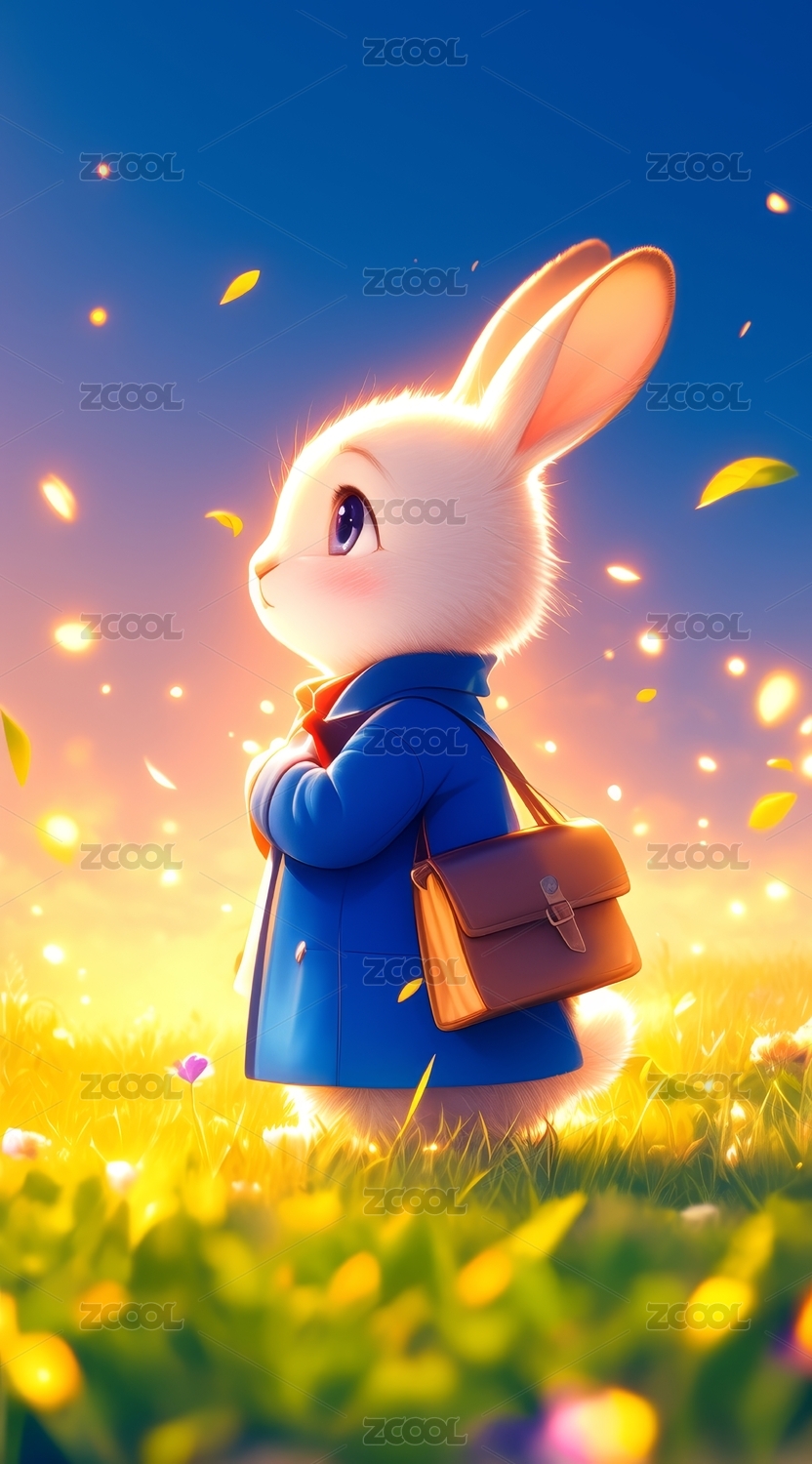 晴朗野外一只长耳朵红眼睛白兔3D卡通插画