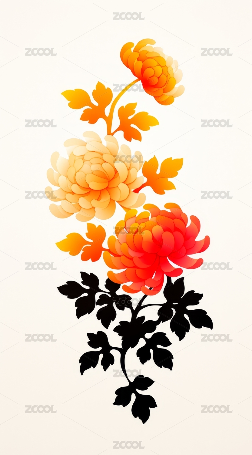 橙色花朵与黑色叶片艺术