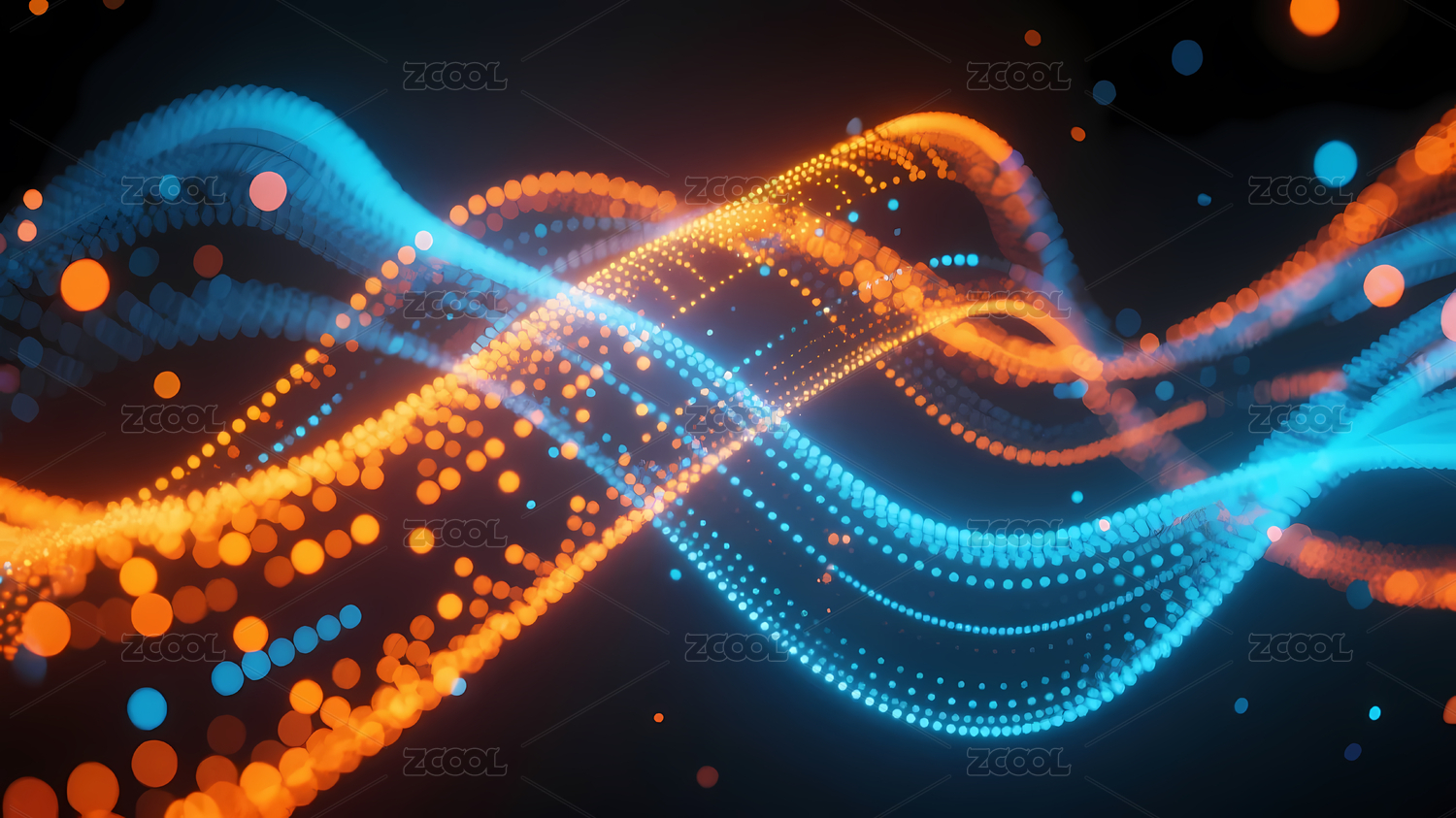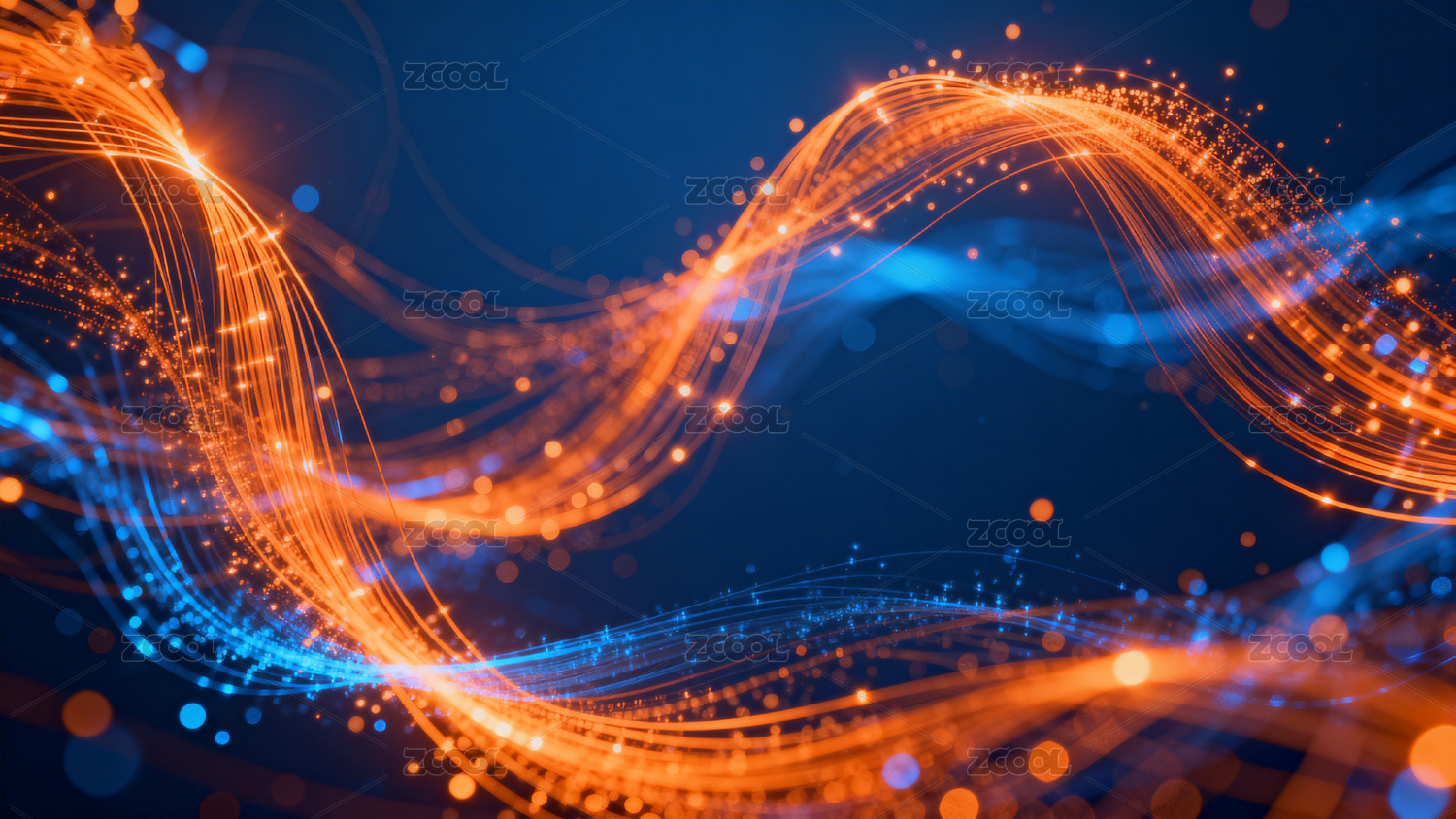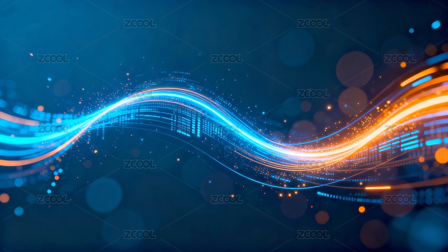 橙色,背景,科技,蓝色,深蓝,动态,光带,流畅,光点,点缀
