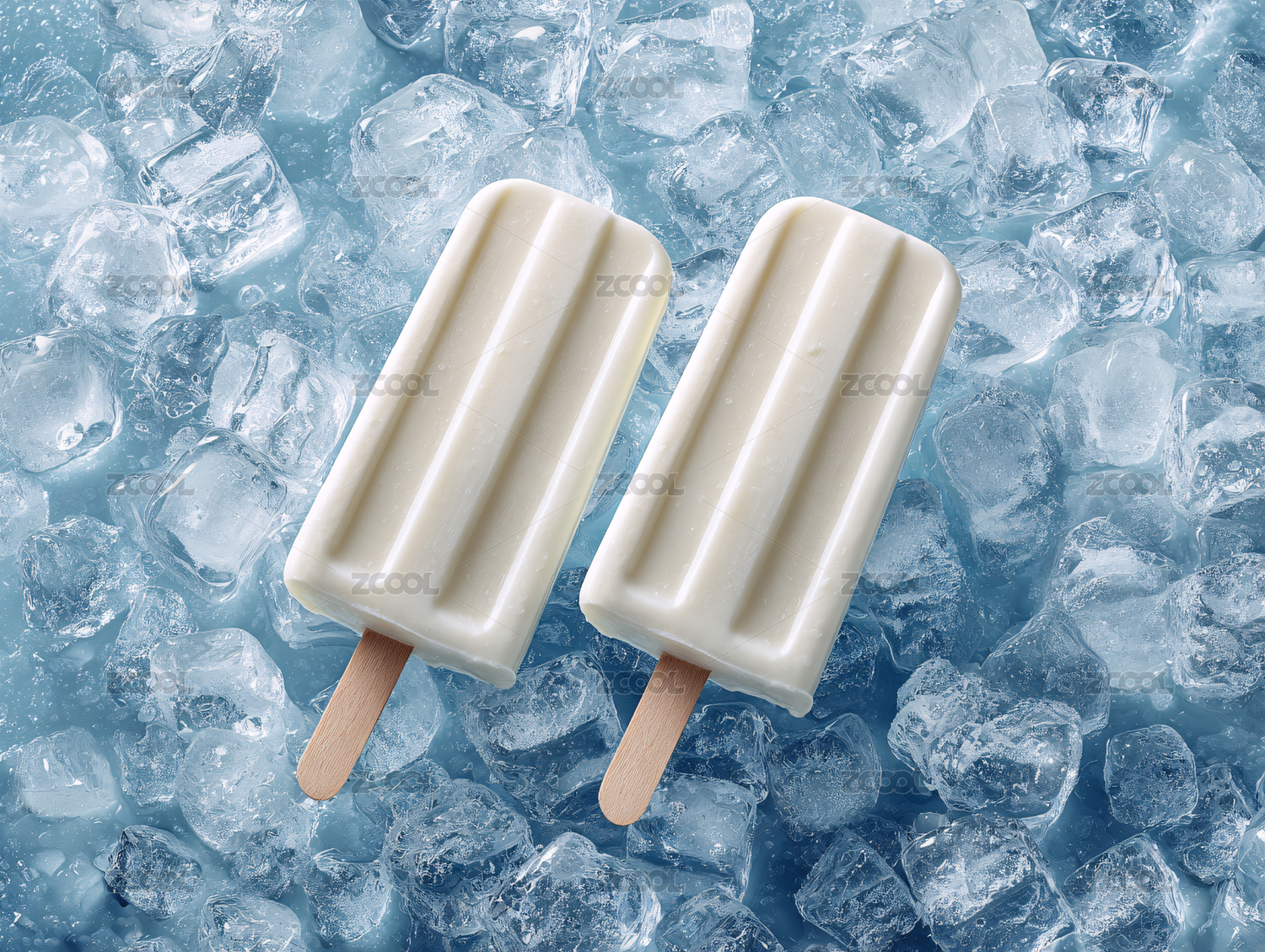 晶莹透亮的彩色冰糕雪糕3D立体卡通插画