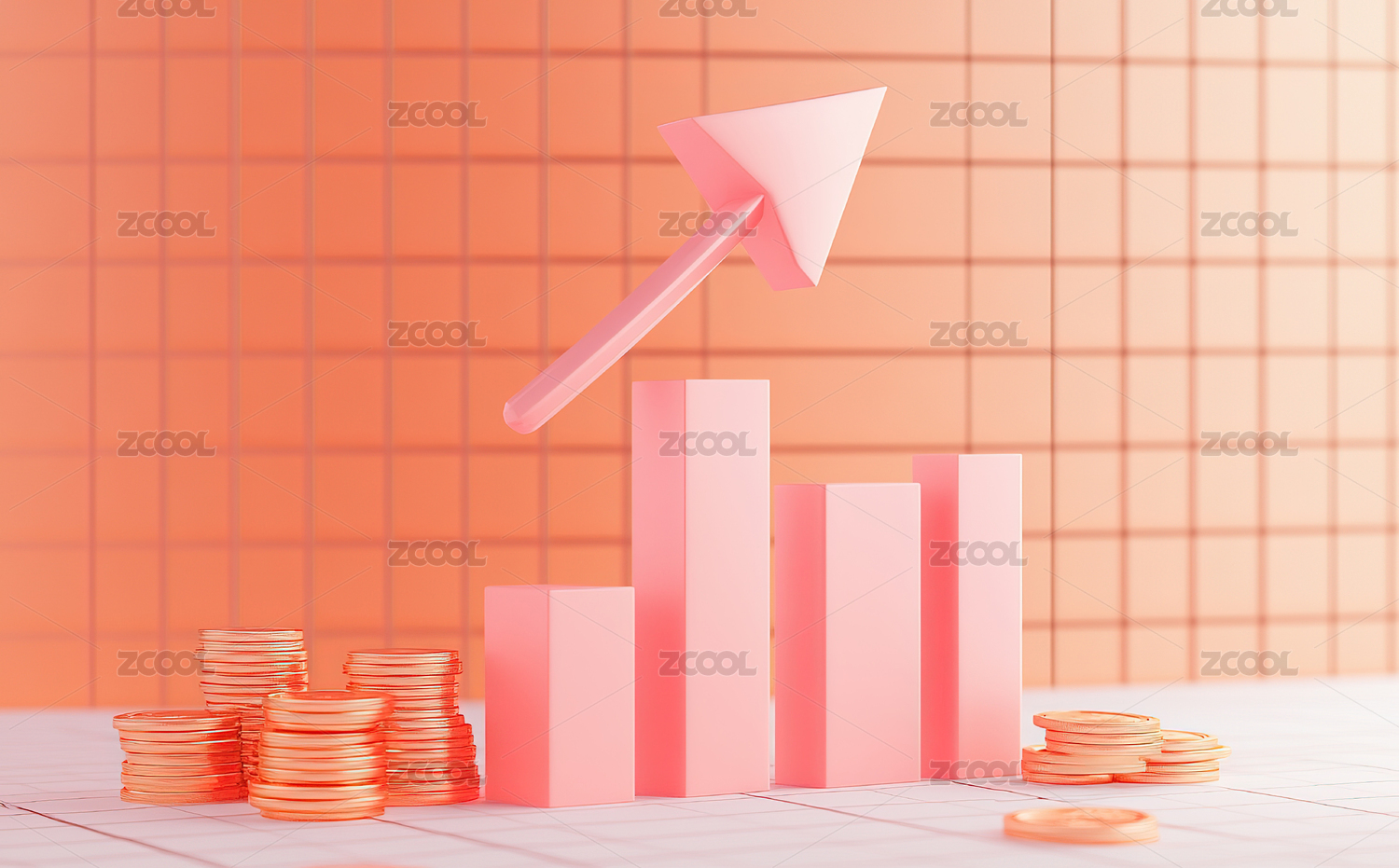 金币堆叠箭头向上增长图