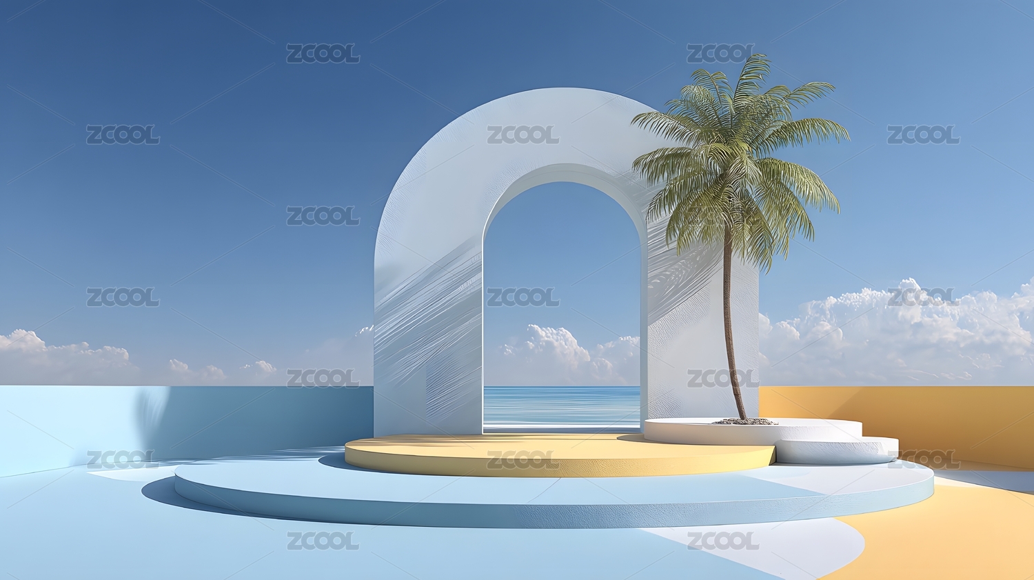 拱门椰树海景夏日清新