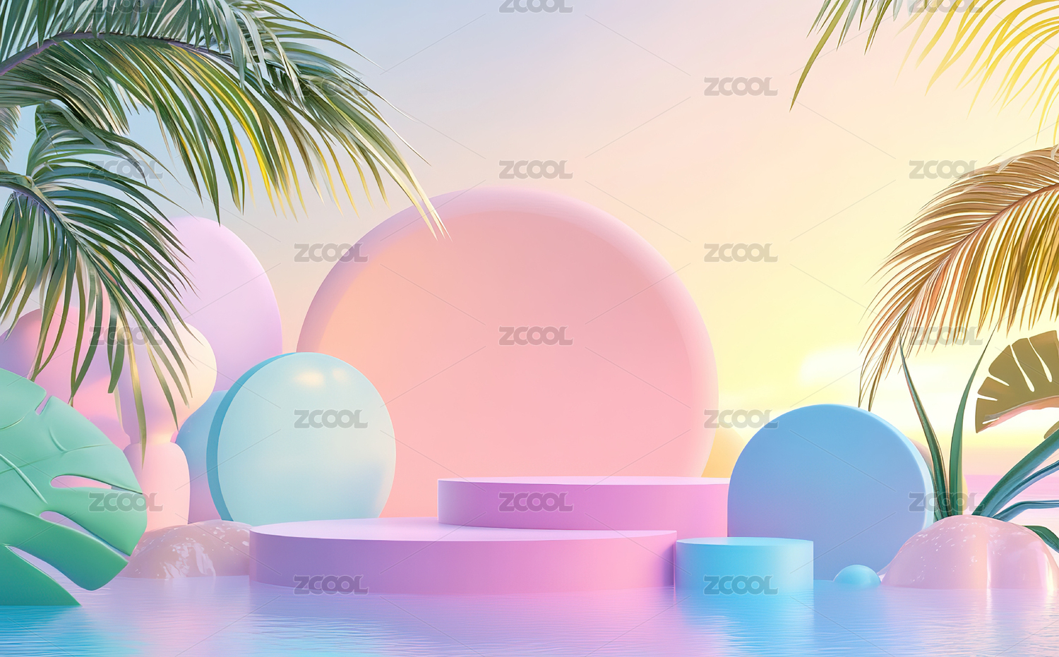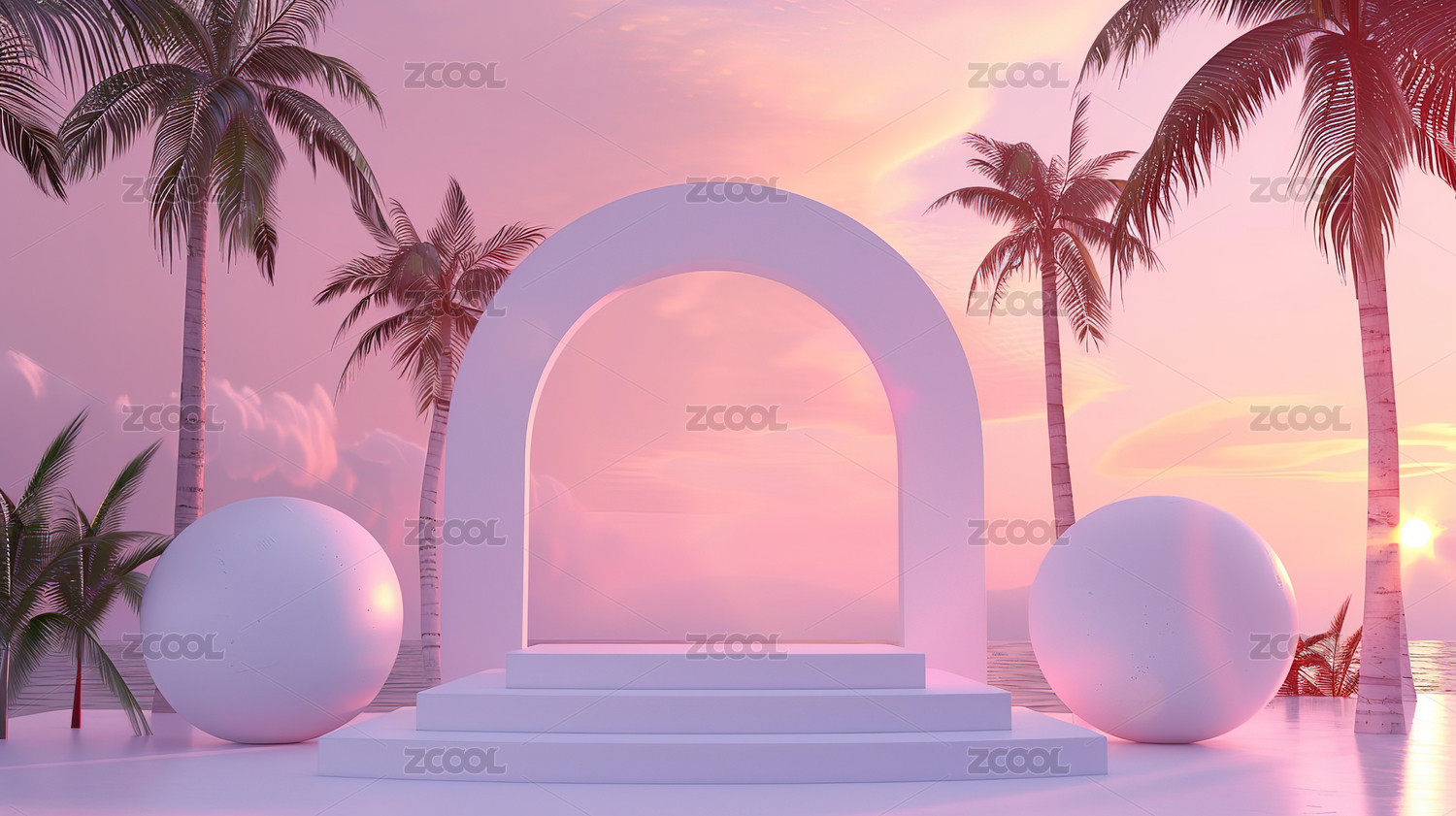 粉色拱门与棕榈树光影场景