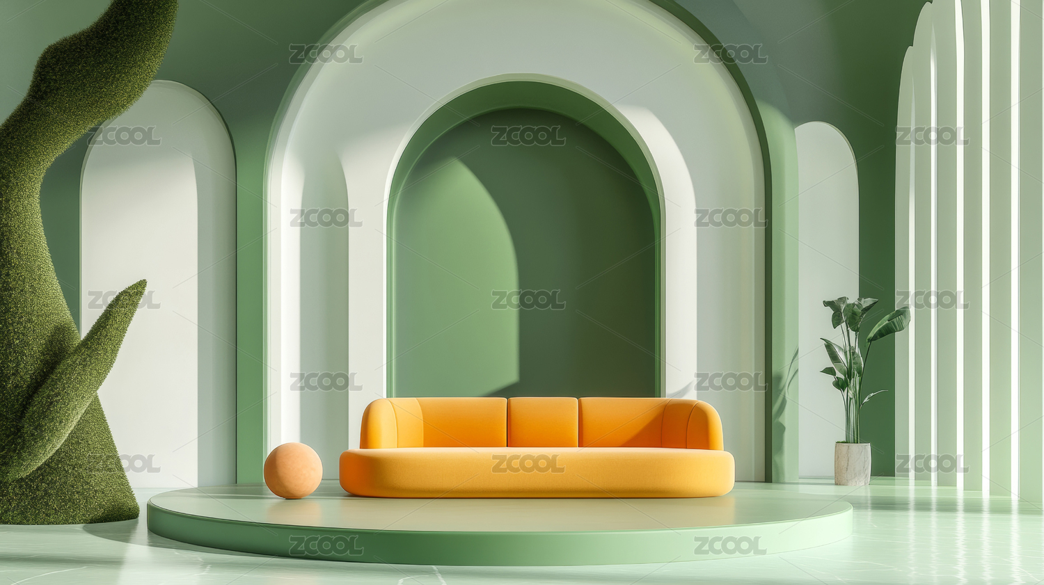 极简,几何,空间,拱门,室内,设计,绿植,盆栽,光影,艺术