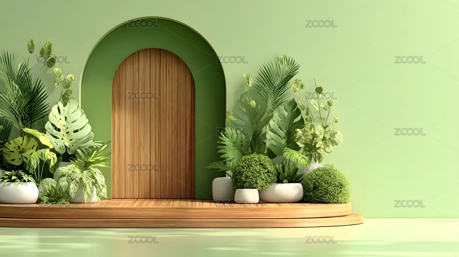 现代3d绿色室内场景