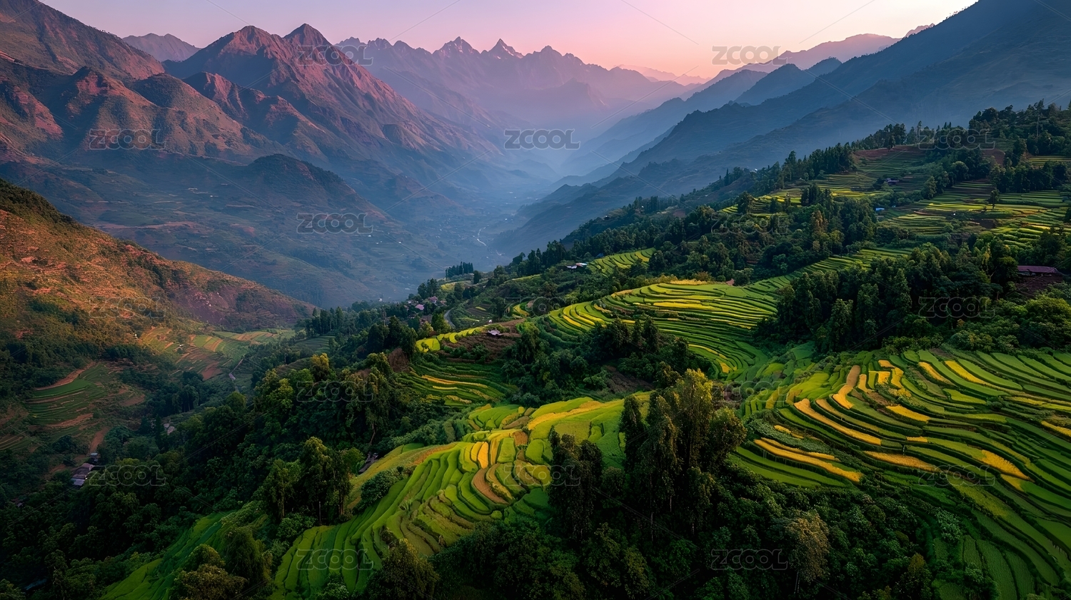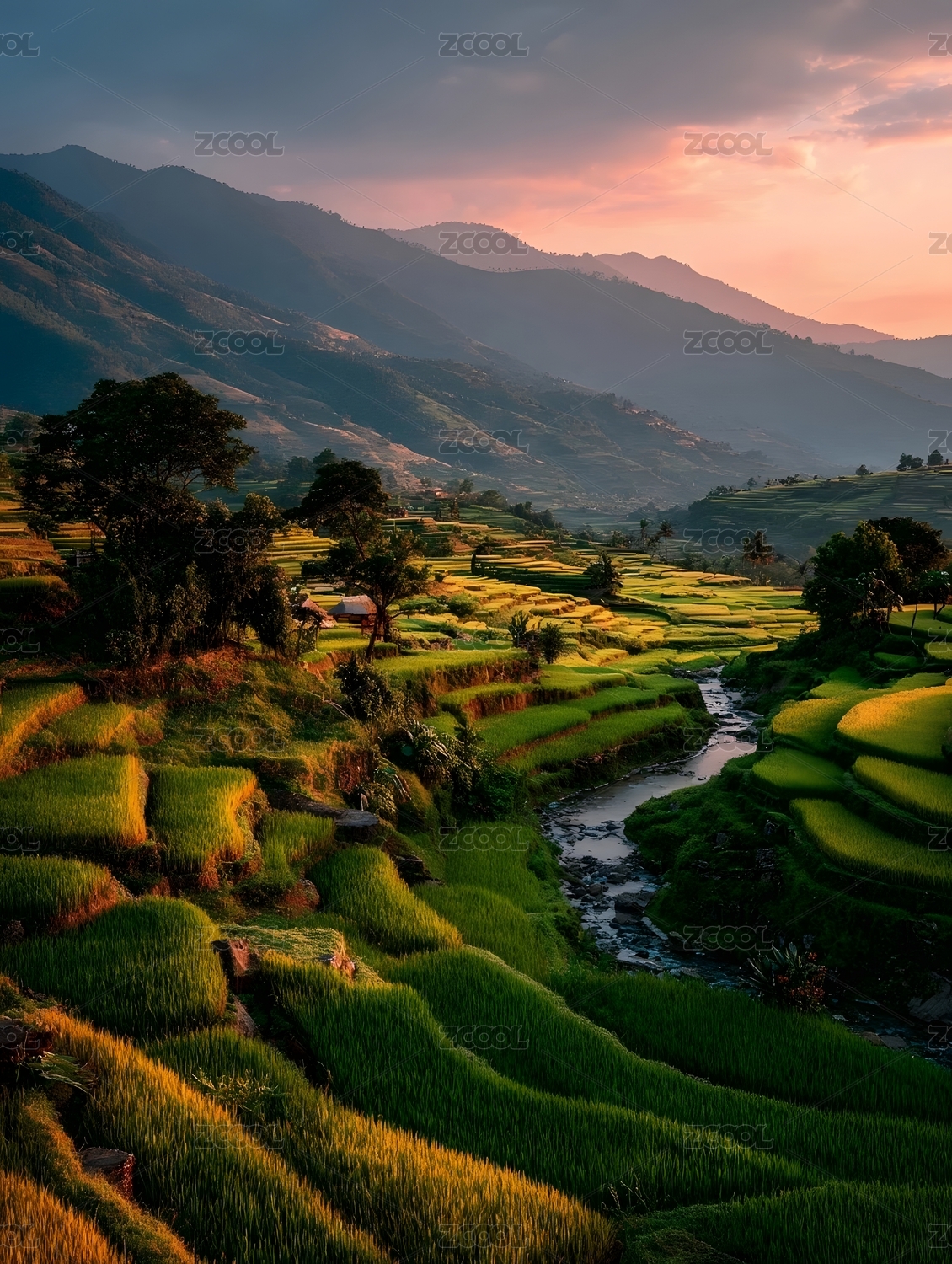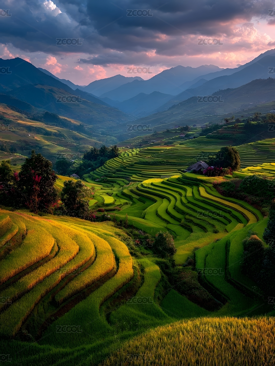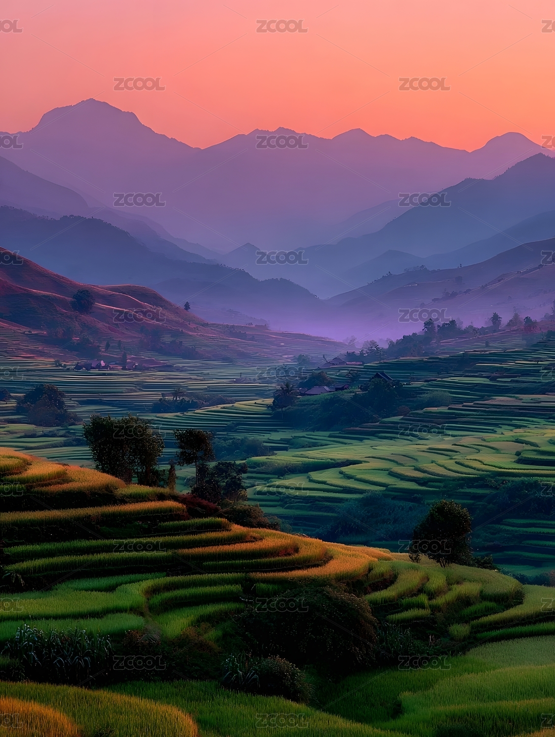 自然,植物,绿色,风景,树木,蓝色,天空,晚霞,远山,田野