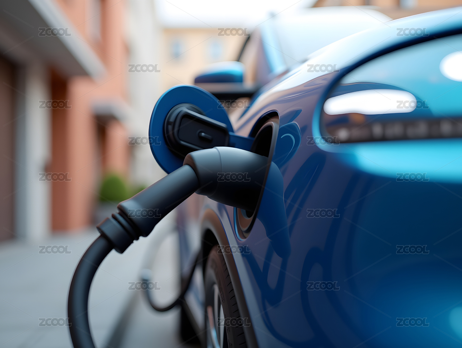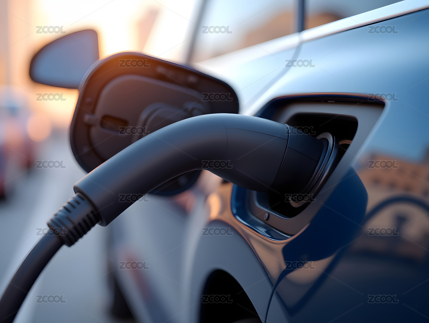 电动汽车充电场景的特写插图