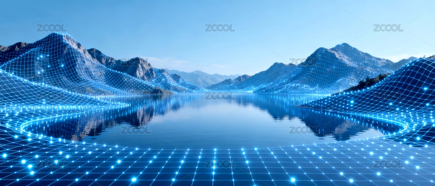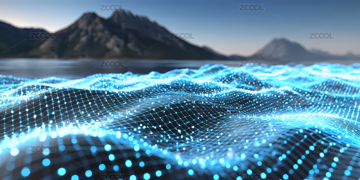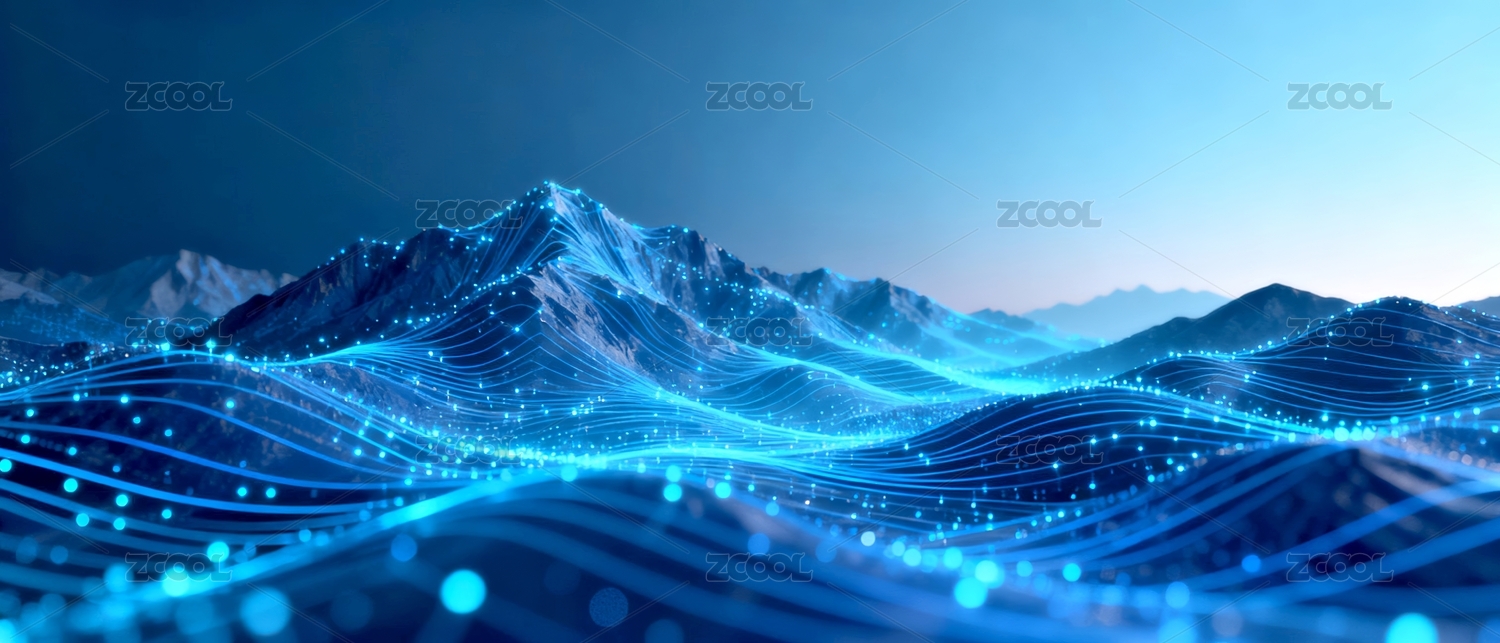 蓝色能量脉络蜿蜒流淌于数字山脉