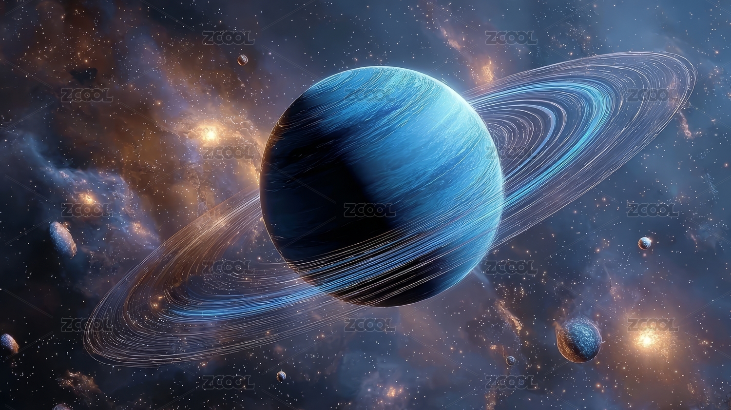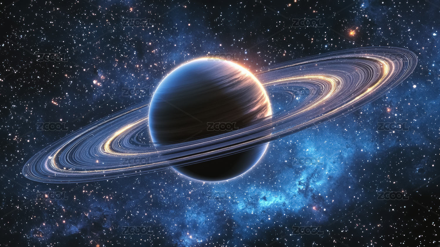蓝色行星与环带的宇宙景象