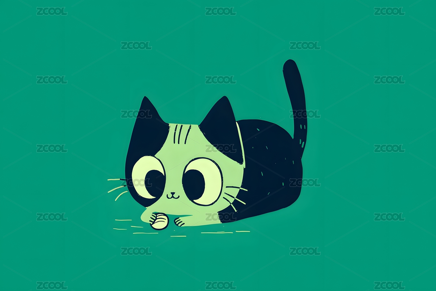 绿色背景上可爱的小黑猫