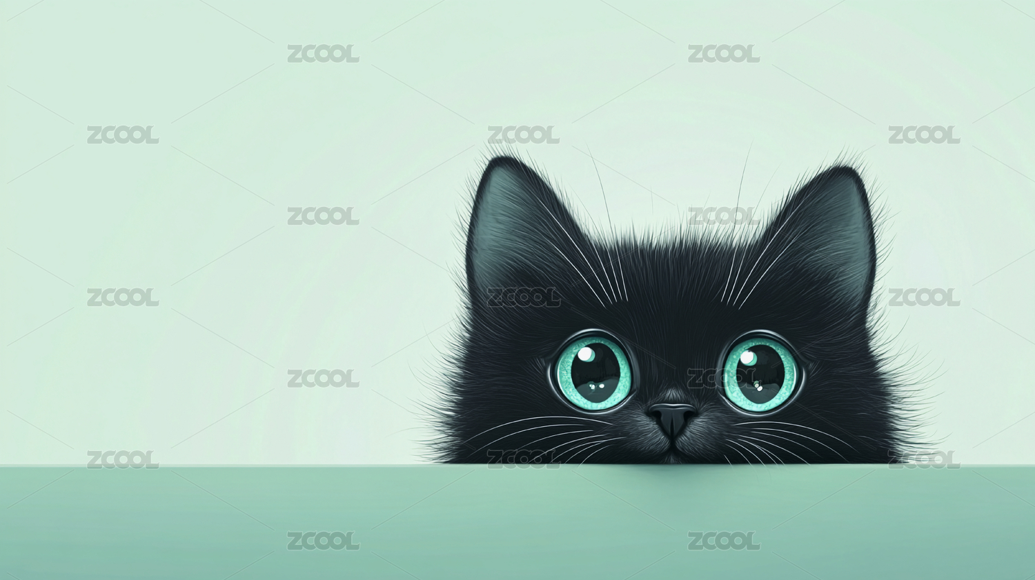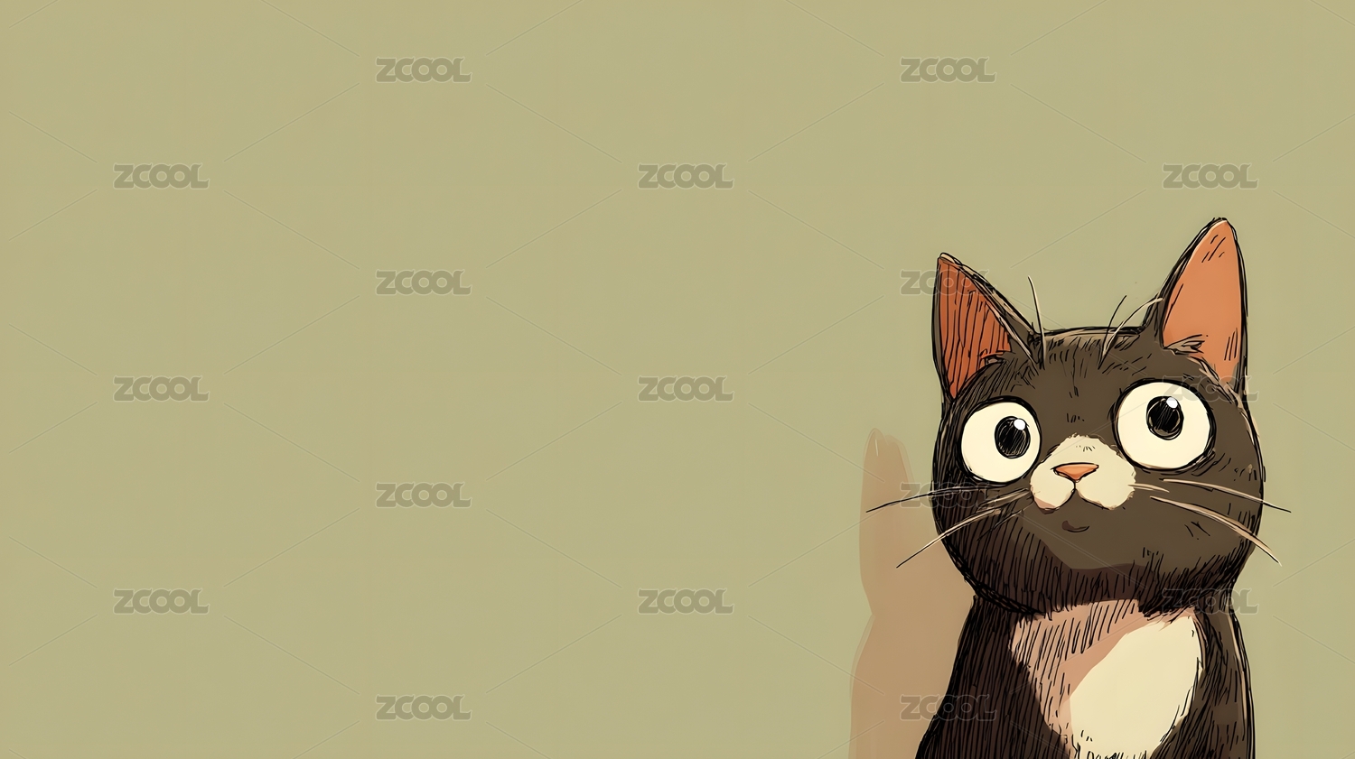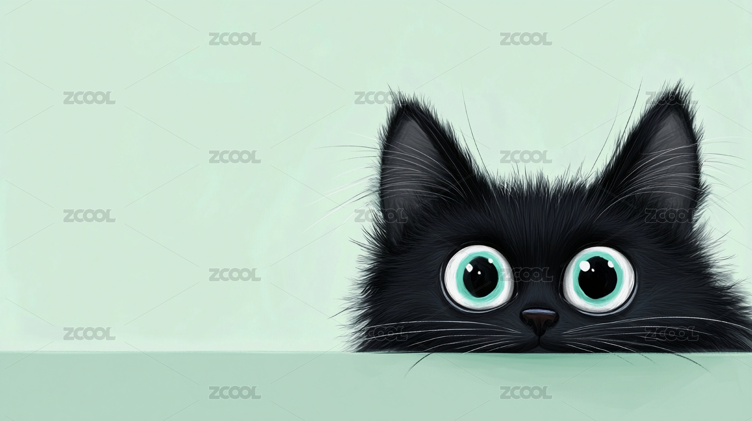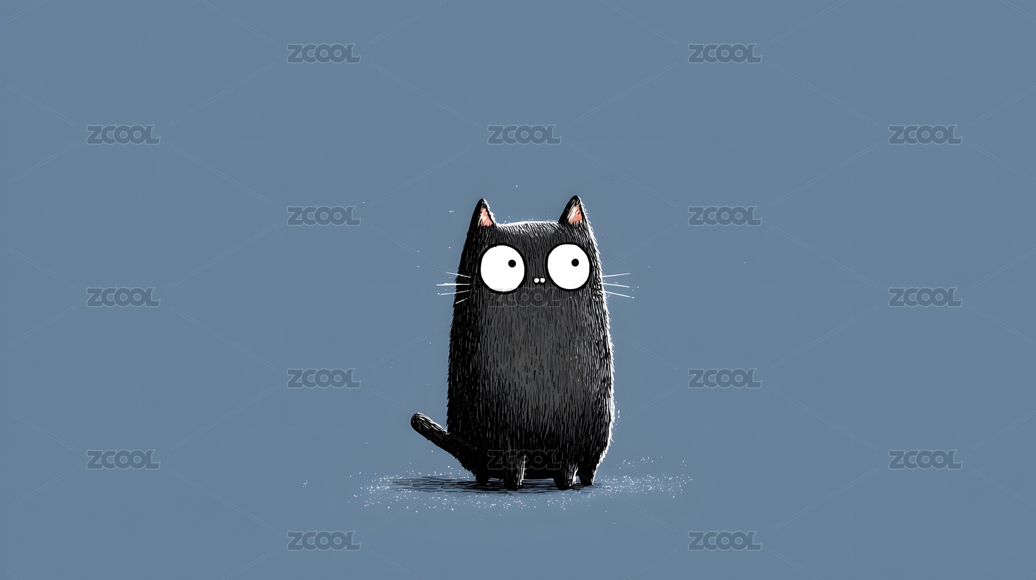 瞪大眼睛的黑色卡通猫咪