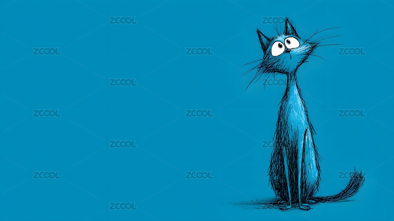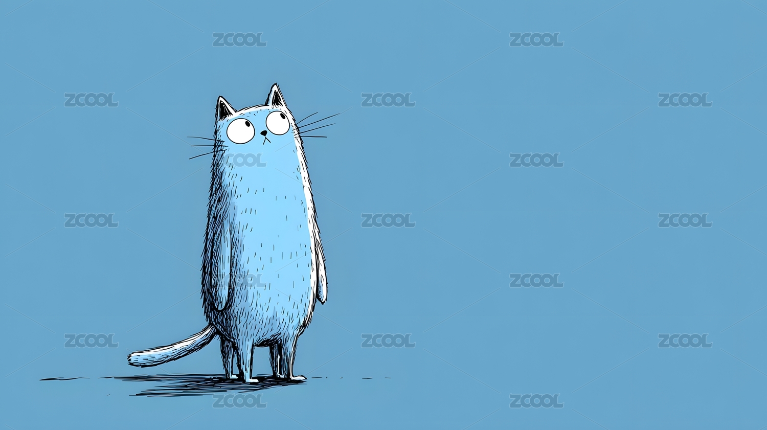 蓝色猫咪凝望天空简约插画
