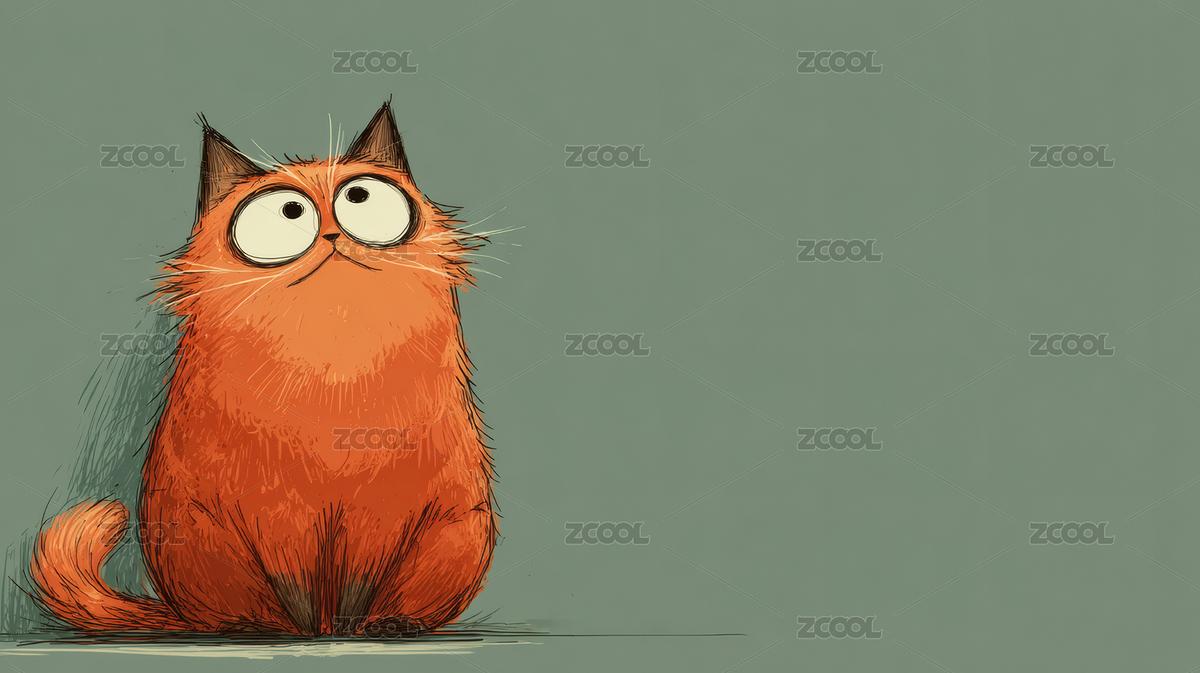 卡通风格:好奇的橙色猫