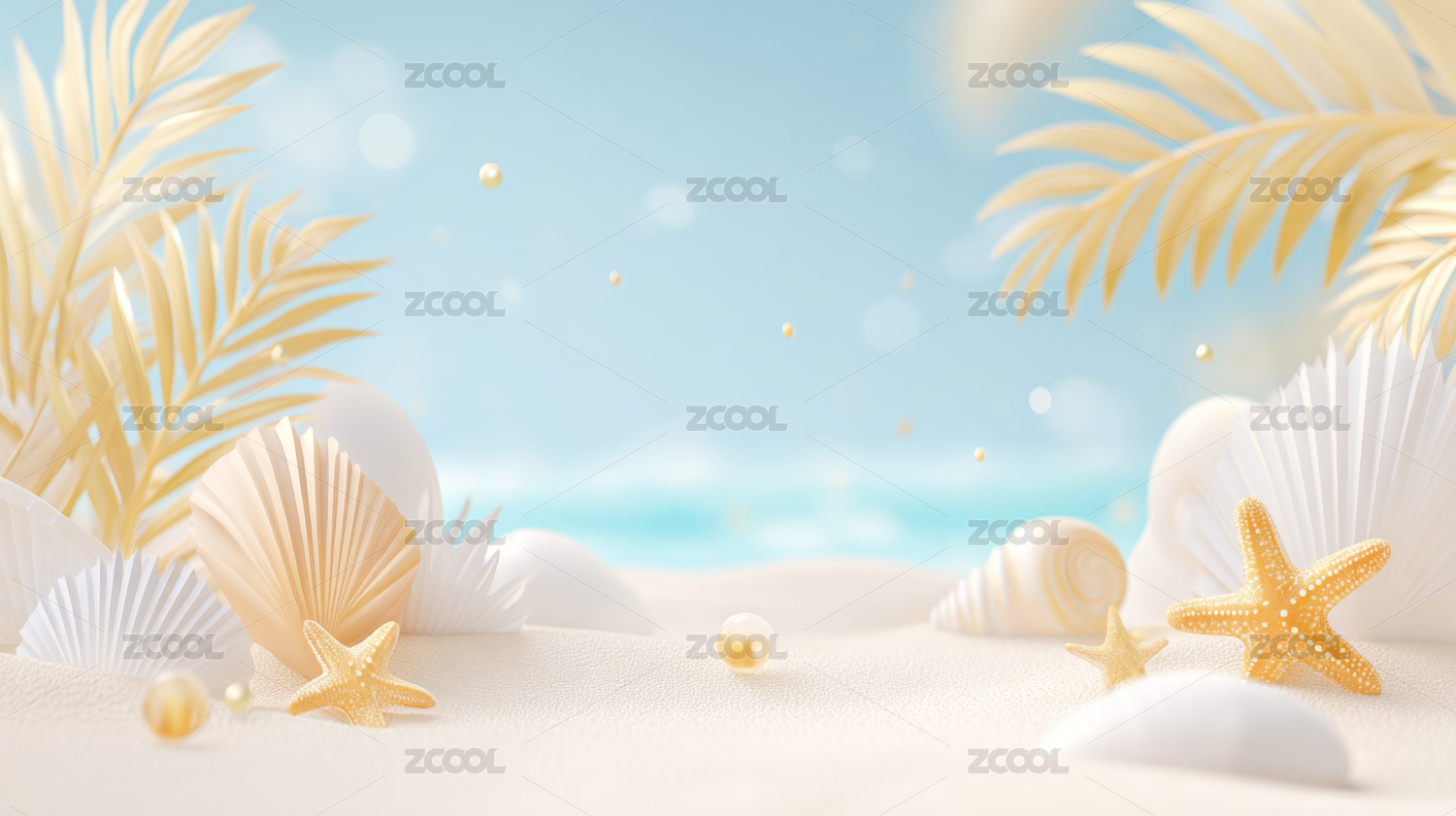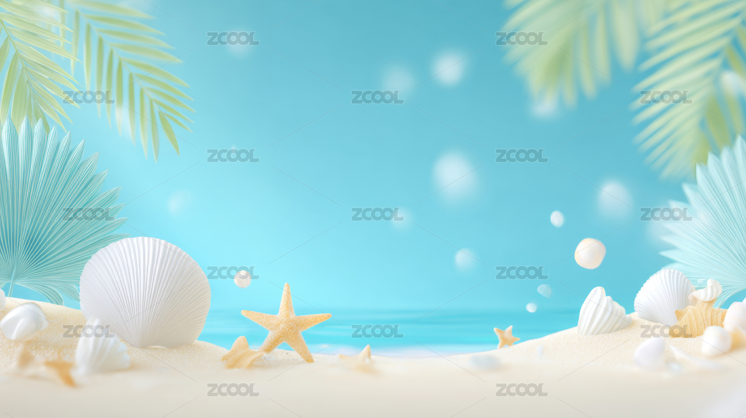夏天海边海浪沙滩贝壳海星儿童风背景