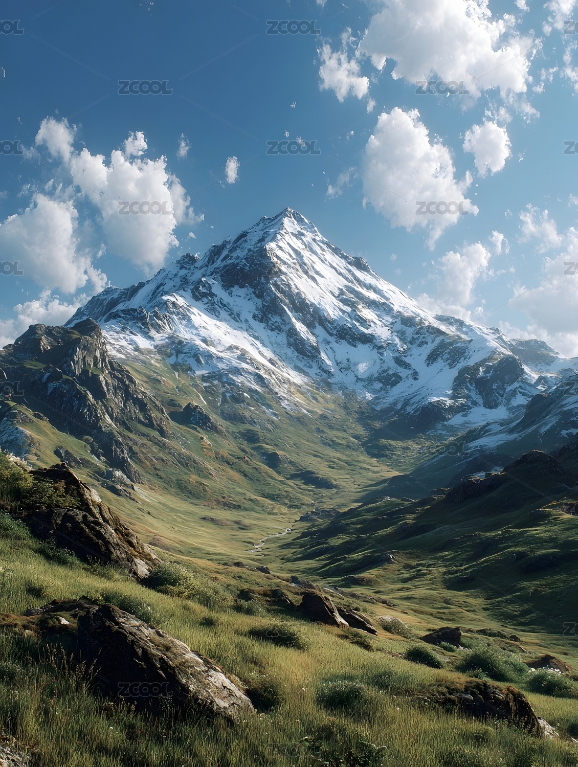 雪山草地高山风景