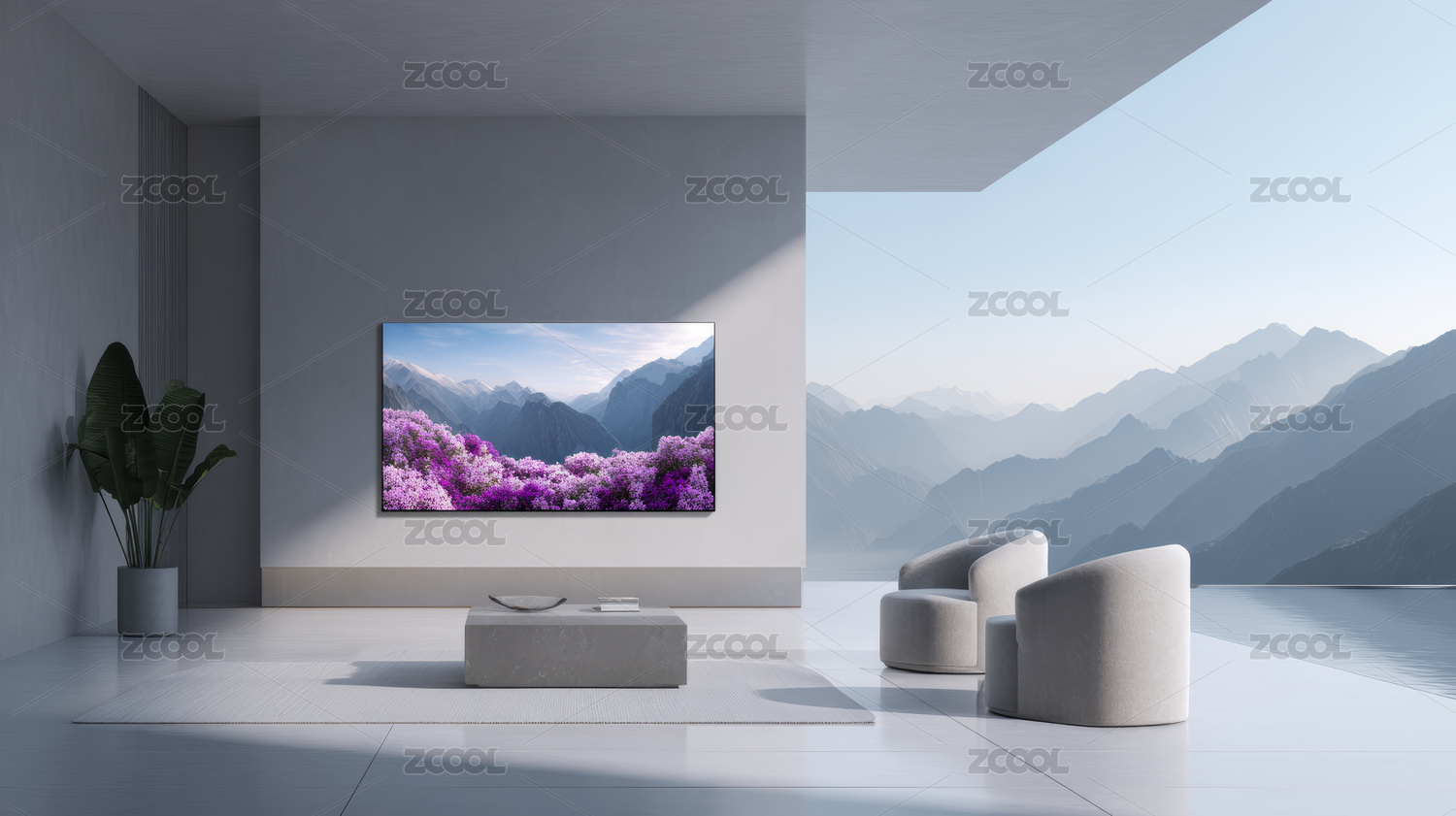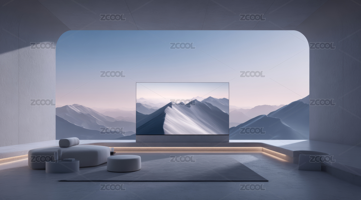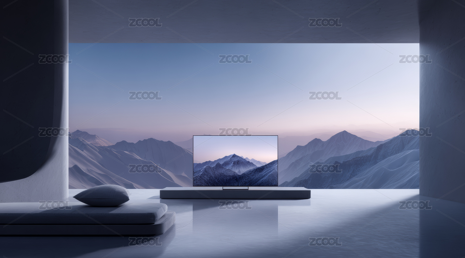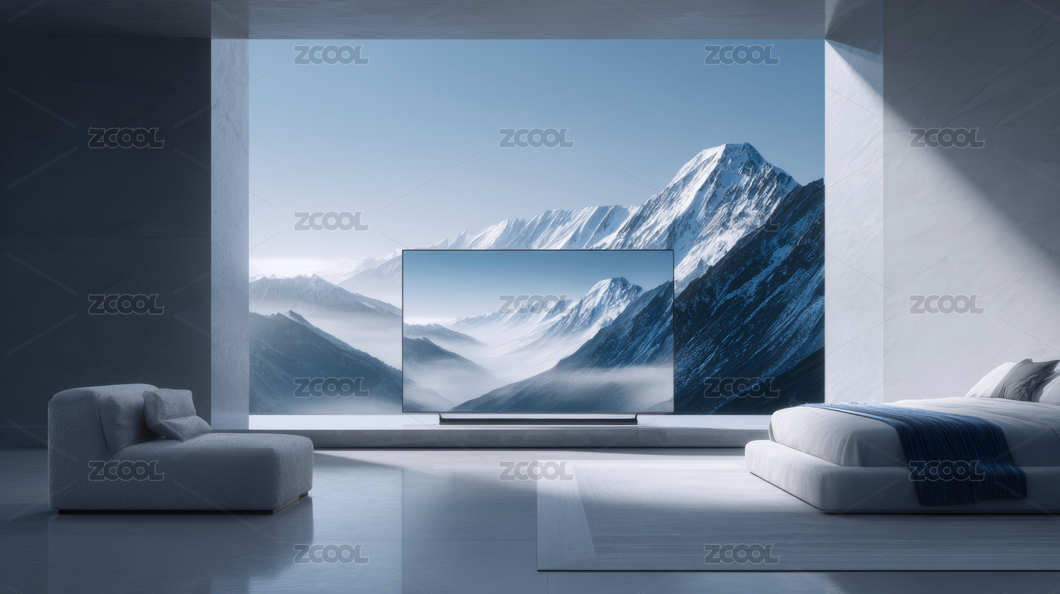 山景,云雾,室内,极简,家居,卧室,客厅,床,沙发,窗外