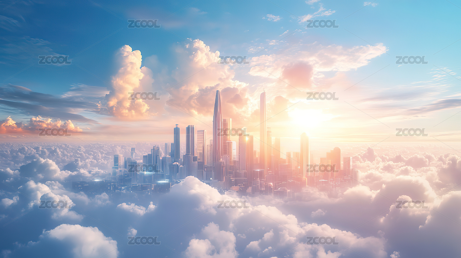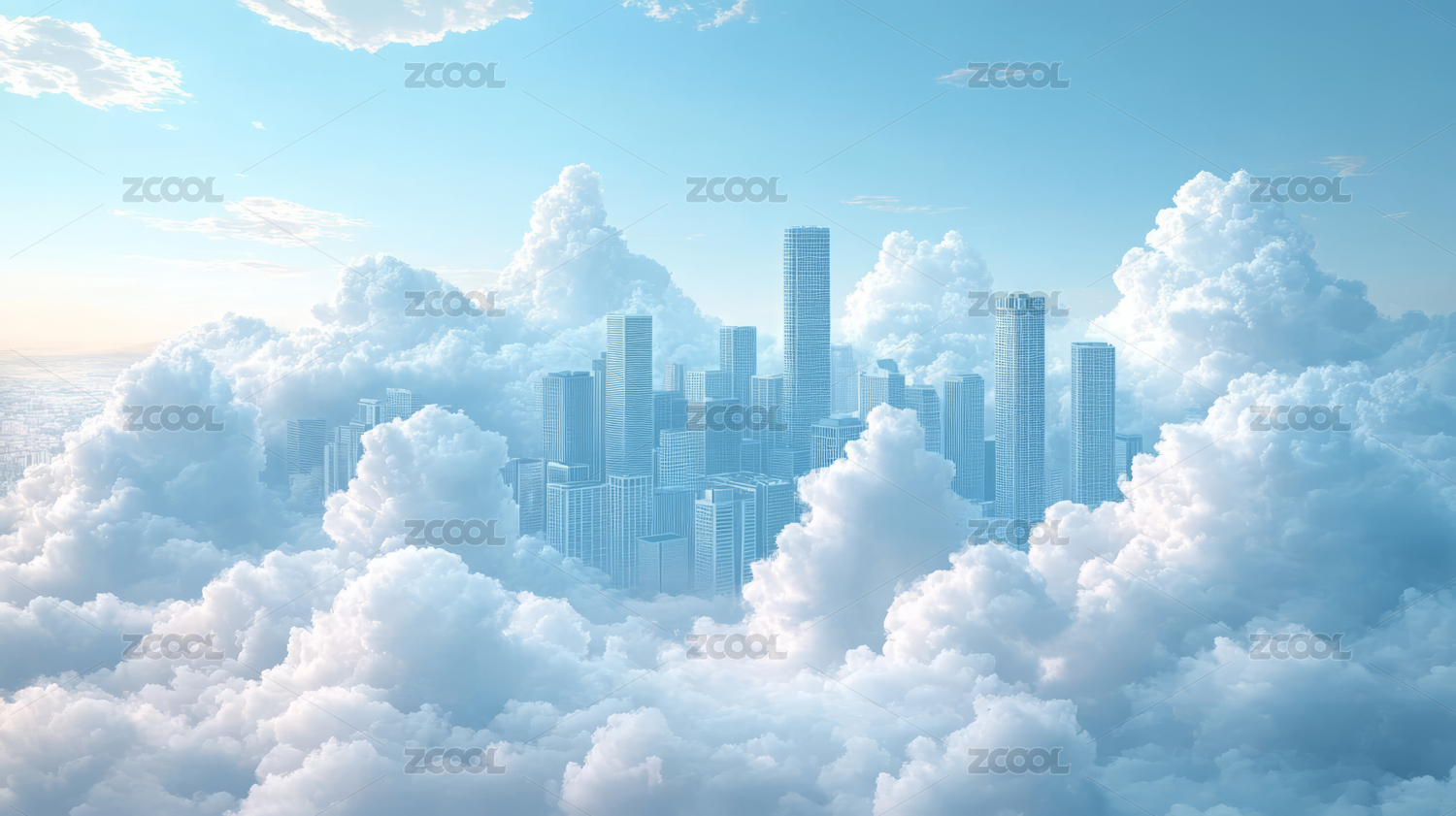 白云中的城市背景
