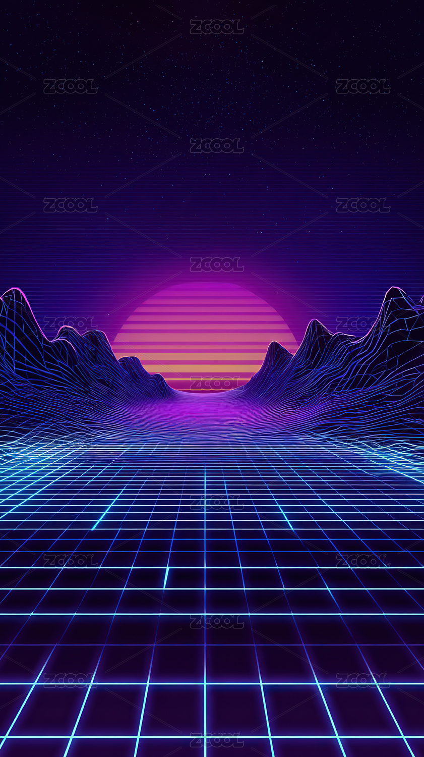 未来,数字艺术,景观,紫色,霓虹灯,赛博朋克,几何,复古,太阳,蓝