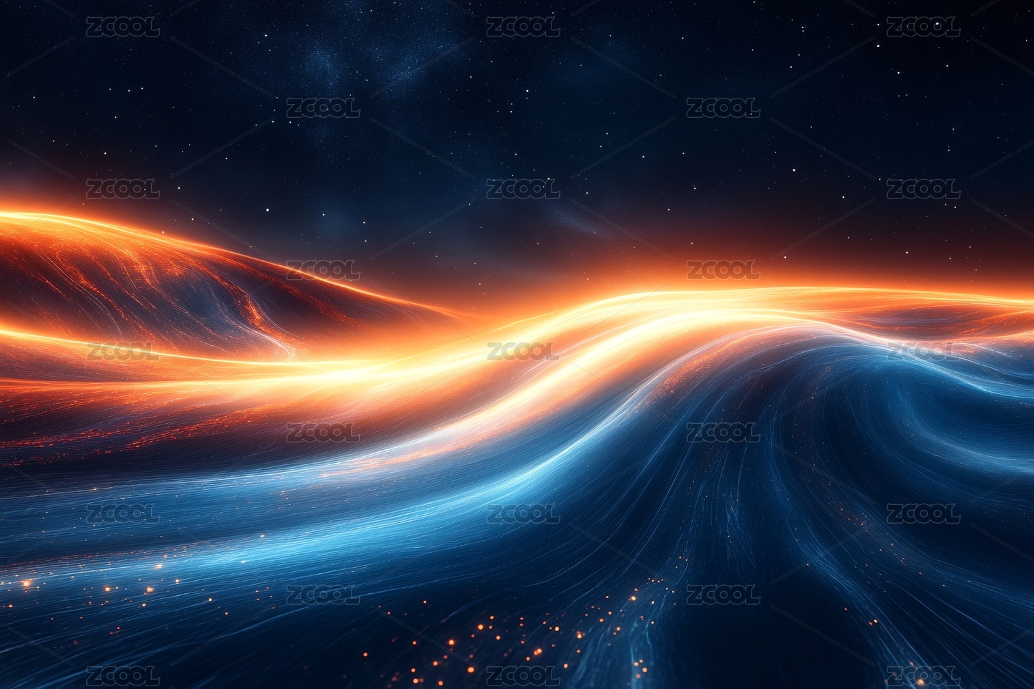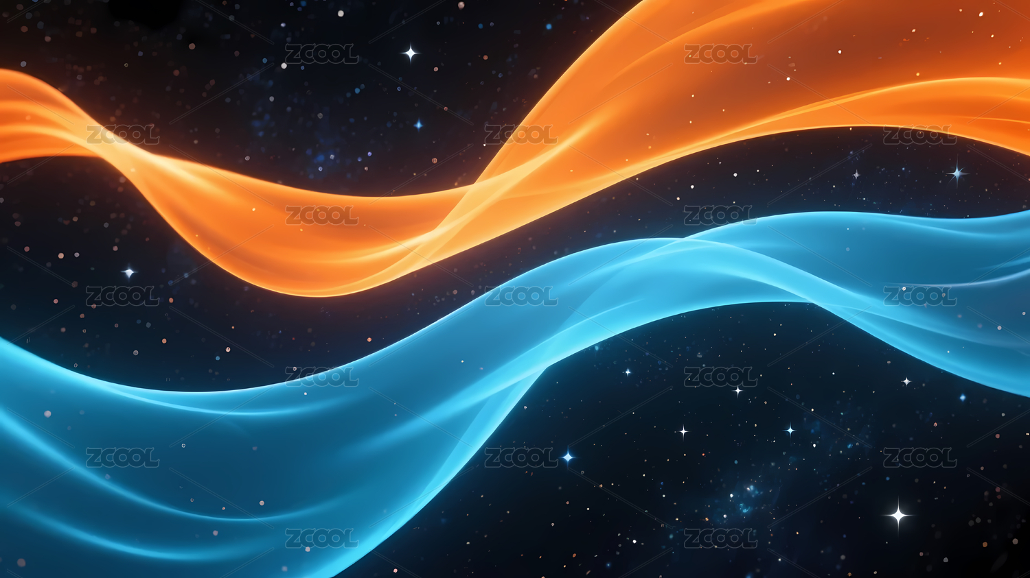 炫彩未来科技感3D蓝橙光流抽象风格背景