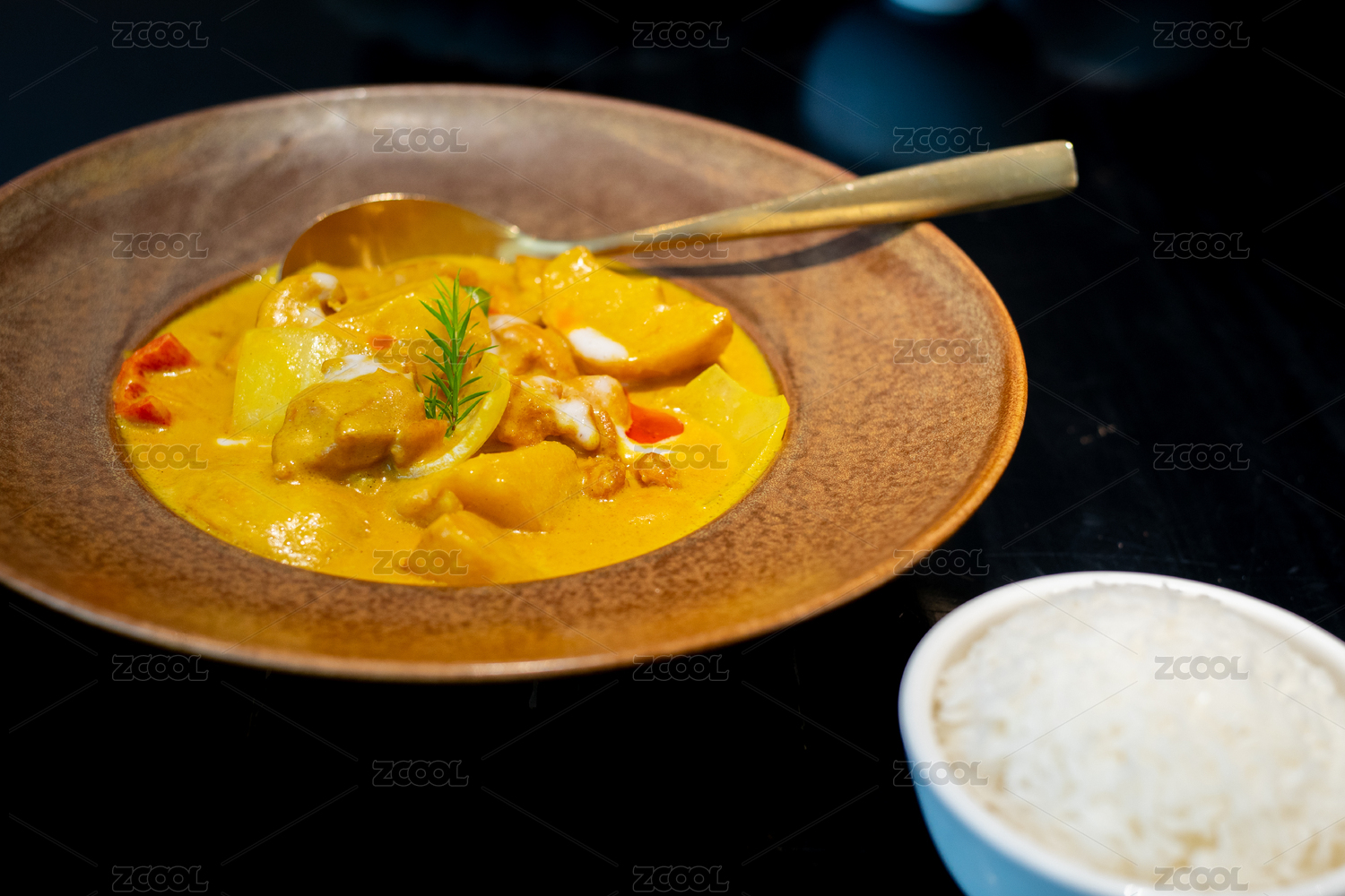 无人,饮食,食品,泰国菜,东南亚美食,东南亚,咖喱,咖喱大虾,咖喱虾,白色盘子