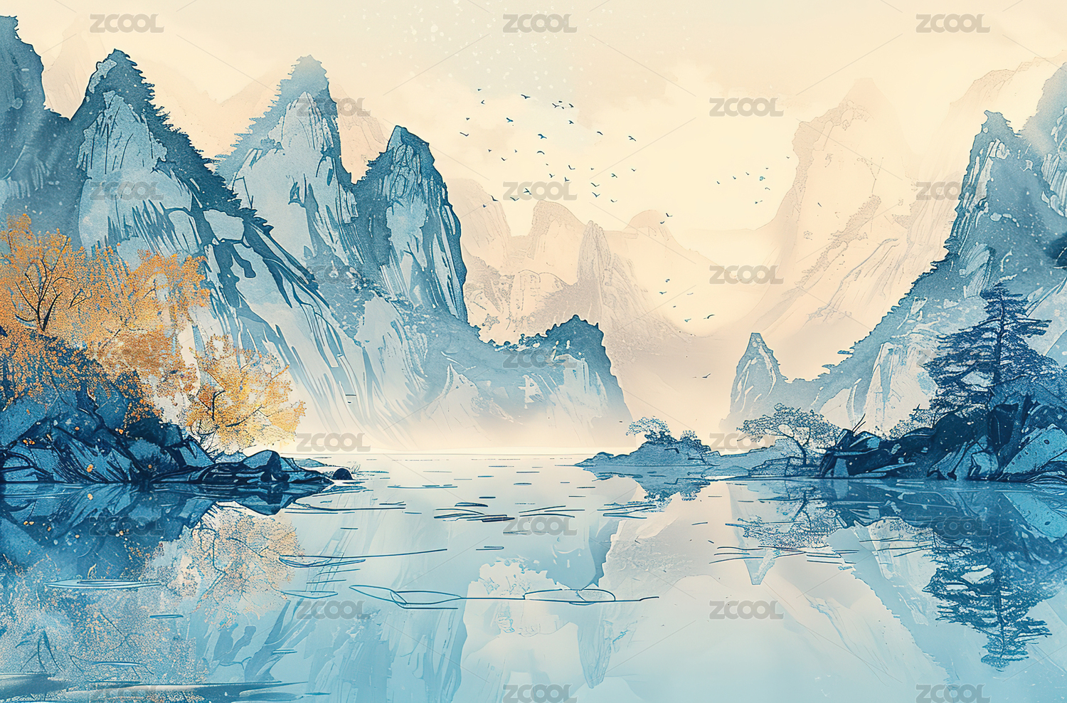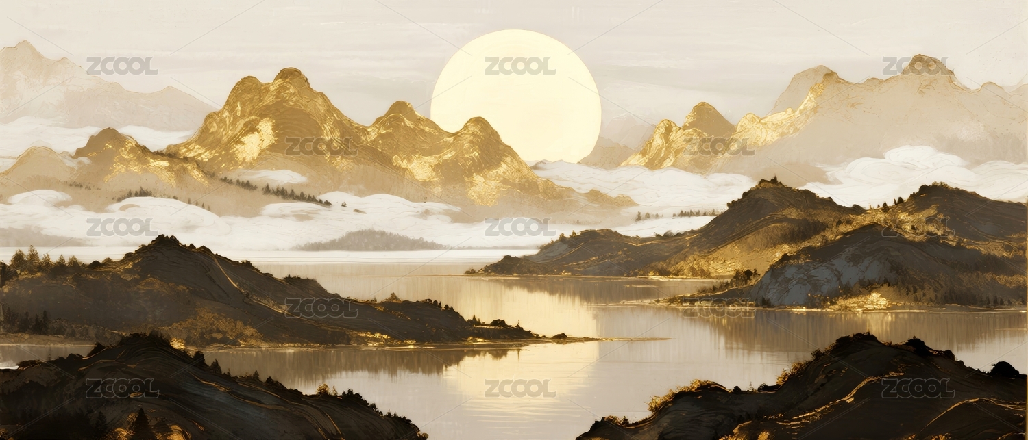 自然,河流,金色,山脉,远山,风景,天空,云,树,山