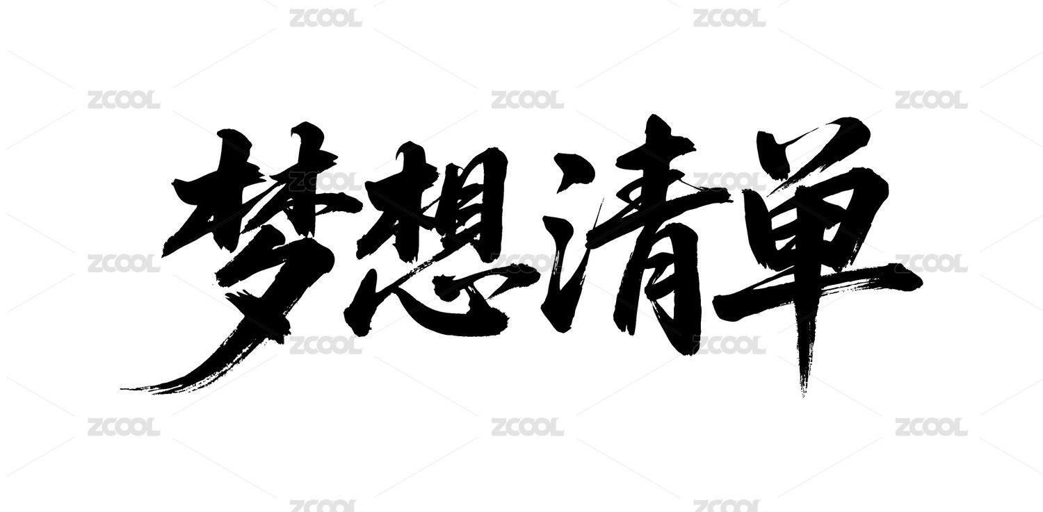 梦想清单矢量书法手写毛笔字