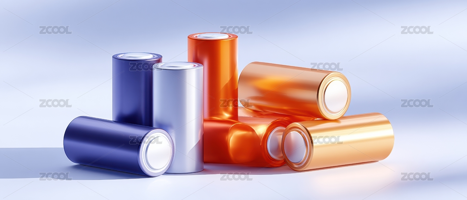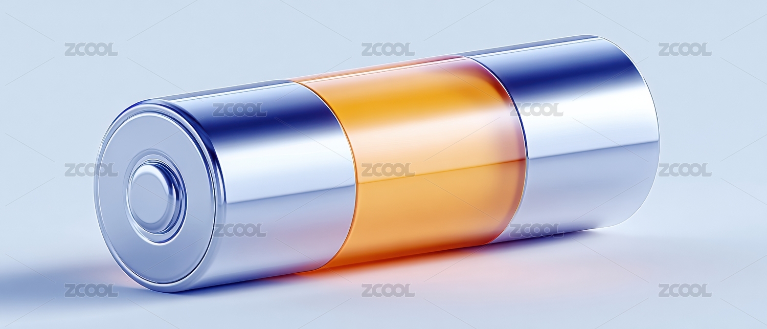 电池,橙色,银色,圆柱形,金属质感,能源,电力,环保,可再生,科技