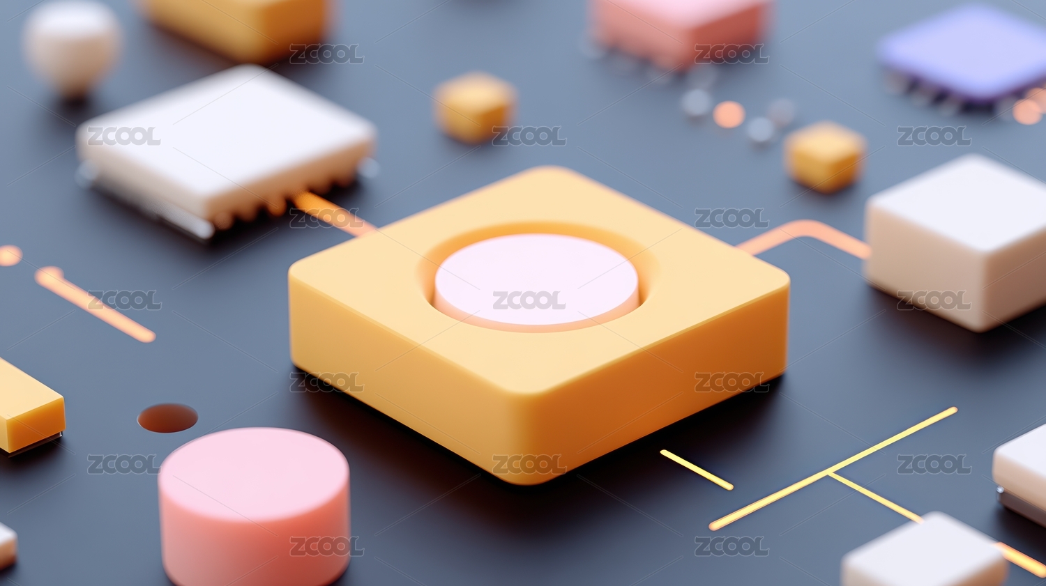 几何图形,现代感,科技感,立体感,色彩对比,视觉焦点,抽象艺术,几何美学,空间感,层次感