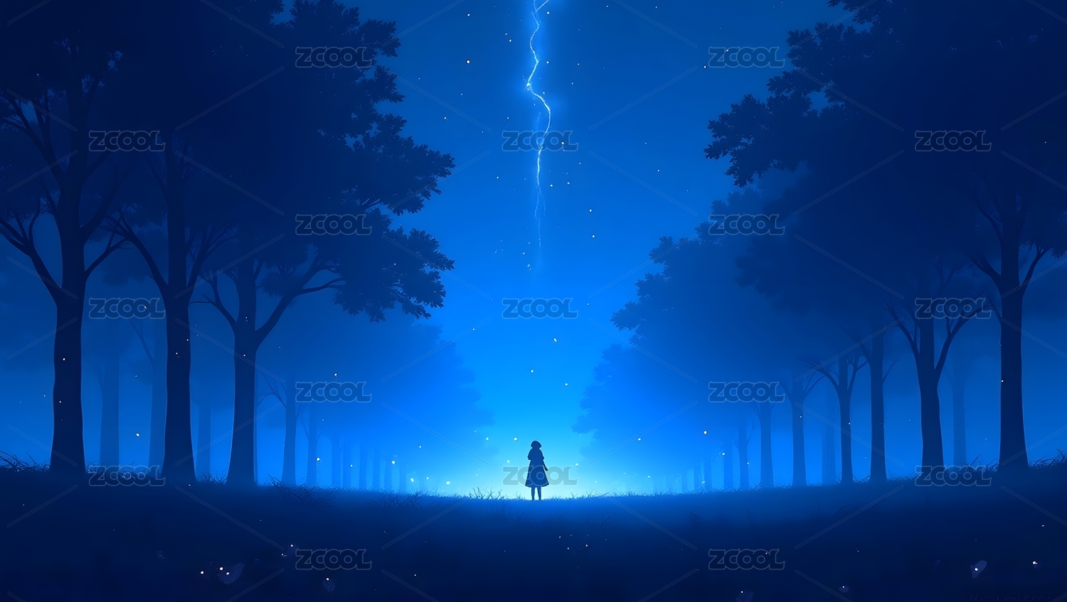 夜晚森林中的孤独身影