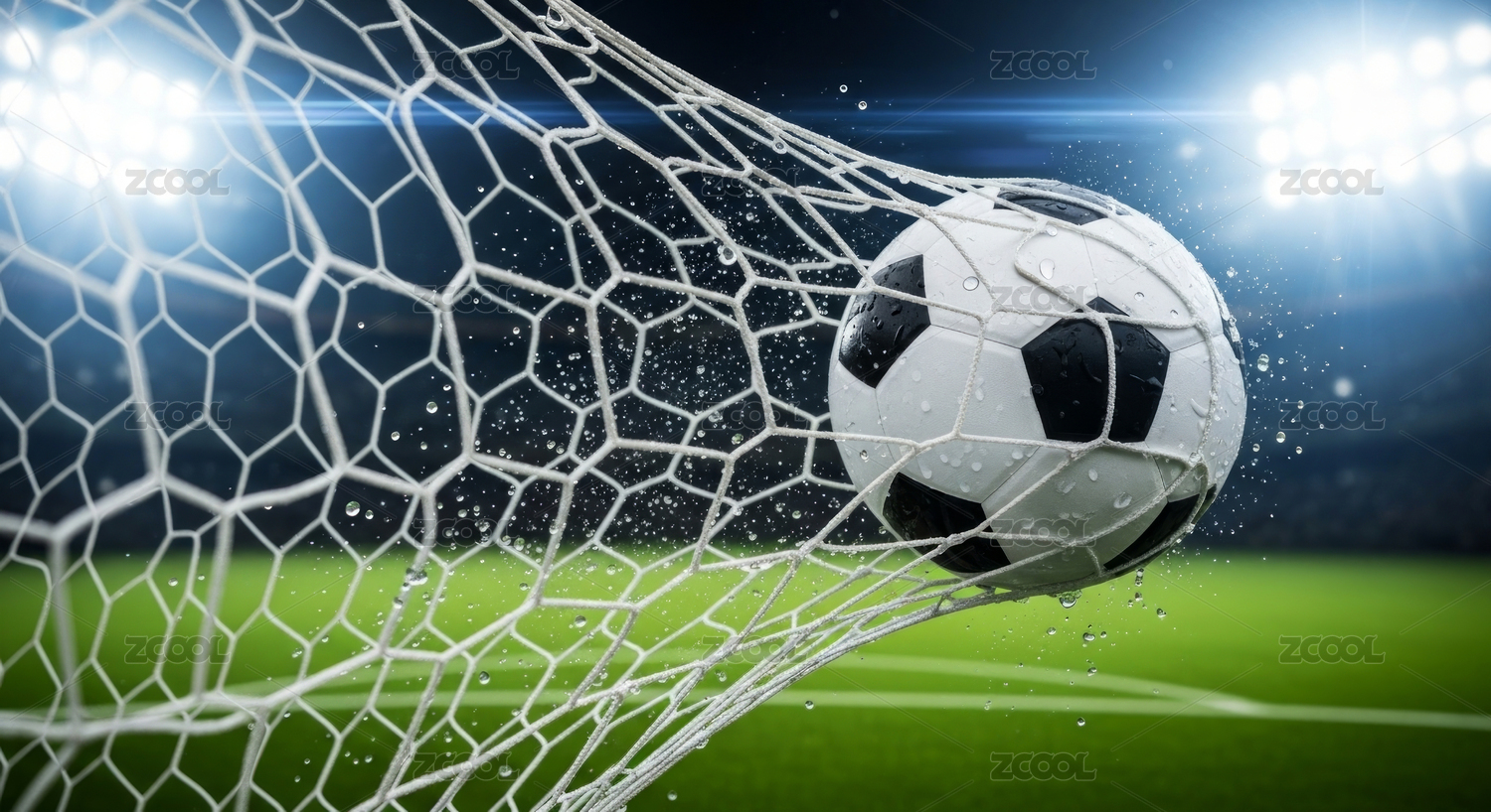 足球穿过球网的瞬间瞬间
