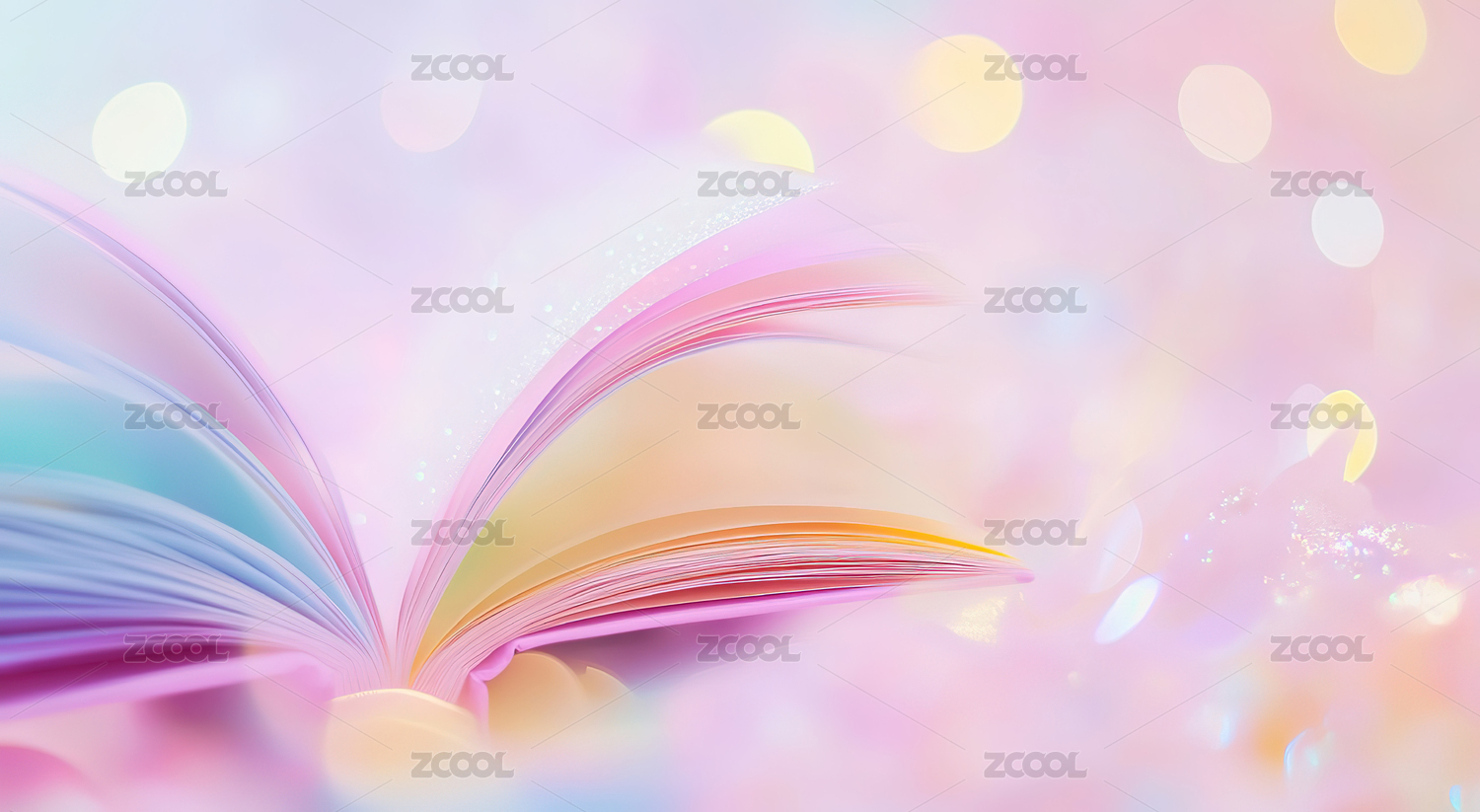 梦幻书本飘浮彩色泡泡甜美童话氛围