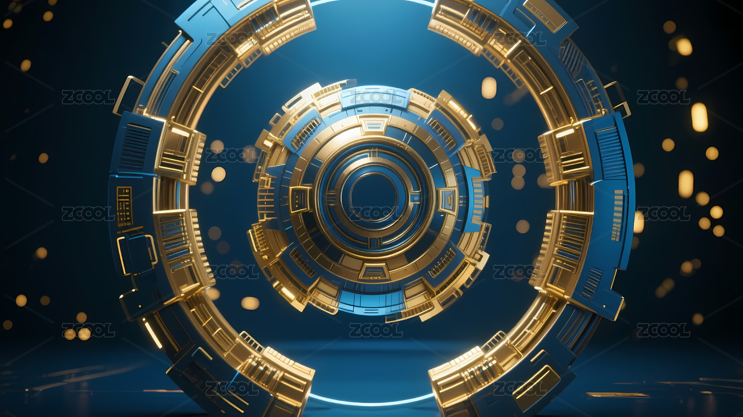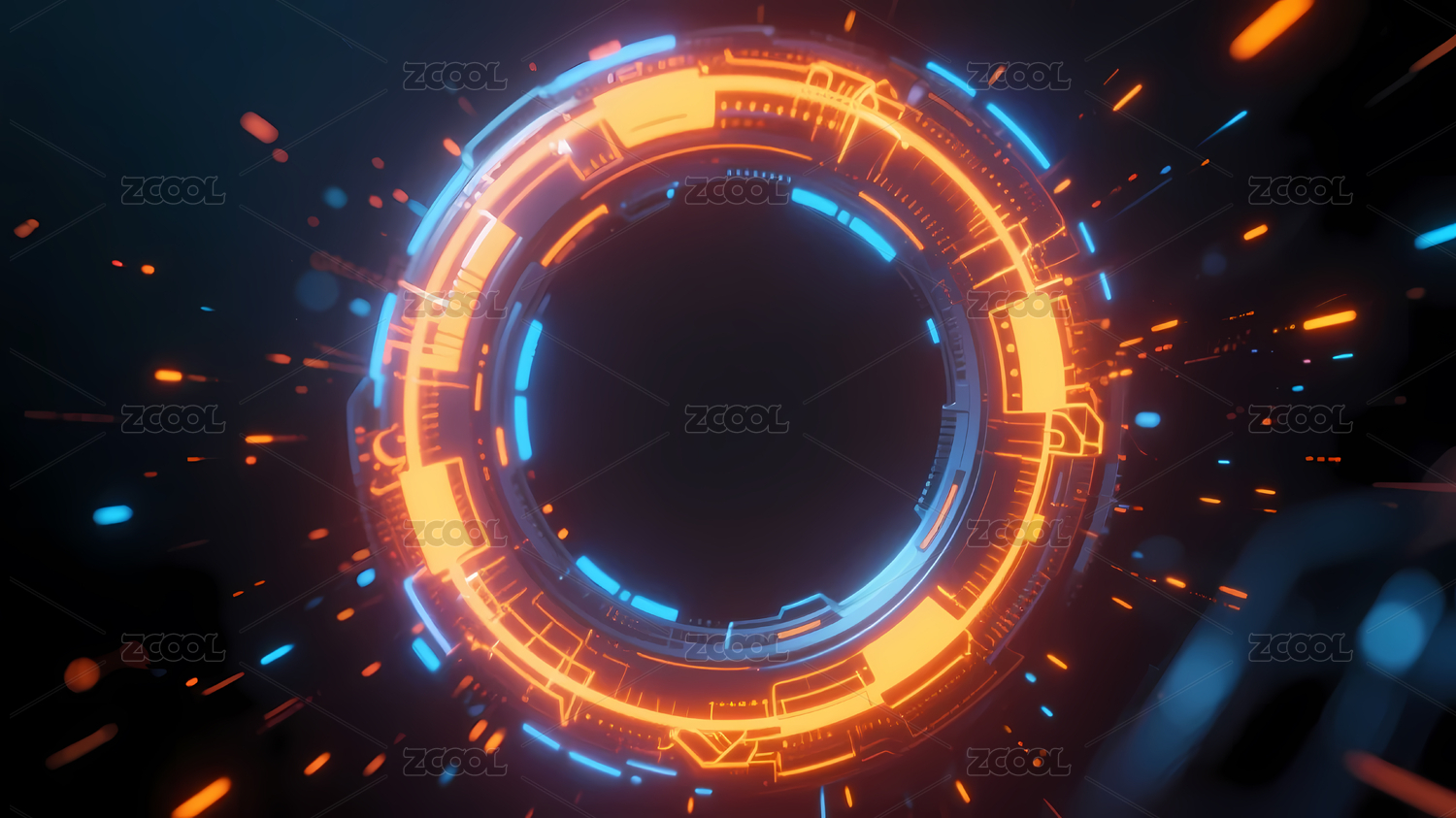 深蓝,未来,科技,机械,银色,橙色,圆形,发光,光环,光影