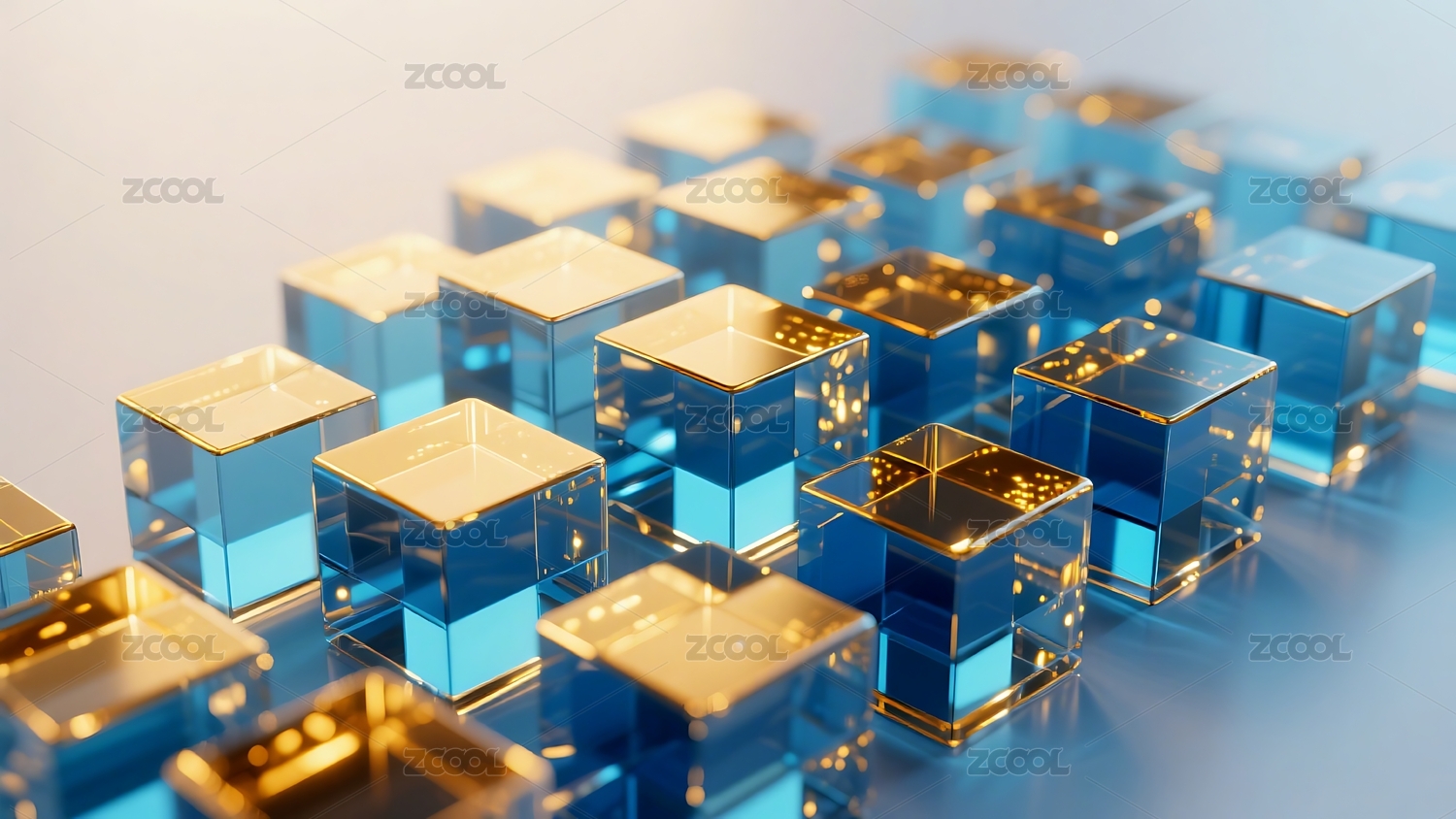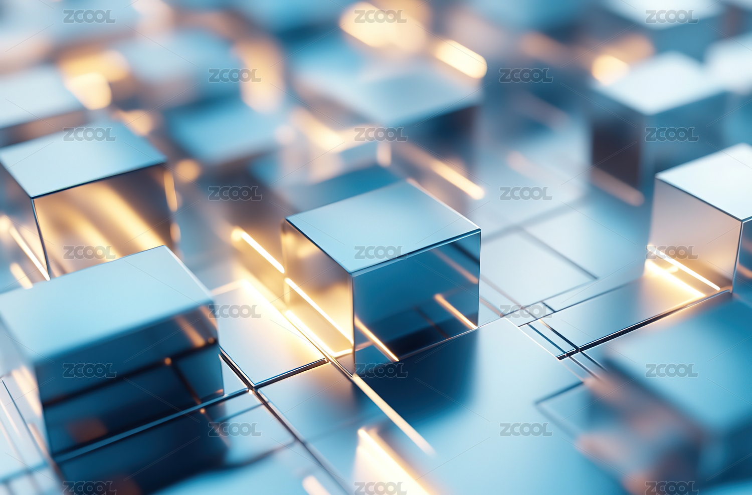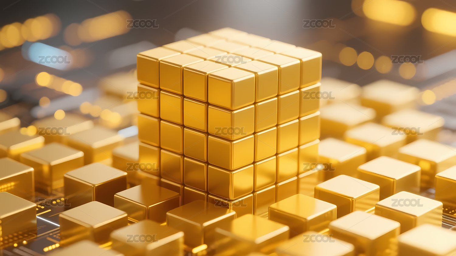金色,财富,科技,背景,冷色,暖色,模糊,立方体,反光,金块