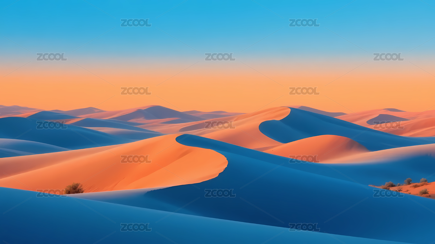 宁静,天空,山脉,渐变,温暖,橙红,沙丘,沙漠,壮丽,朦胧