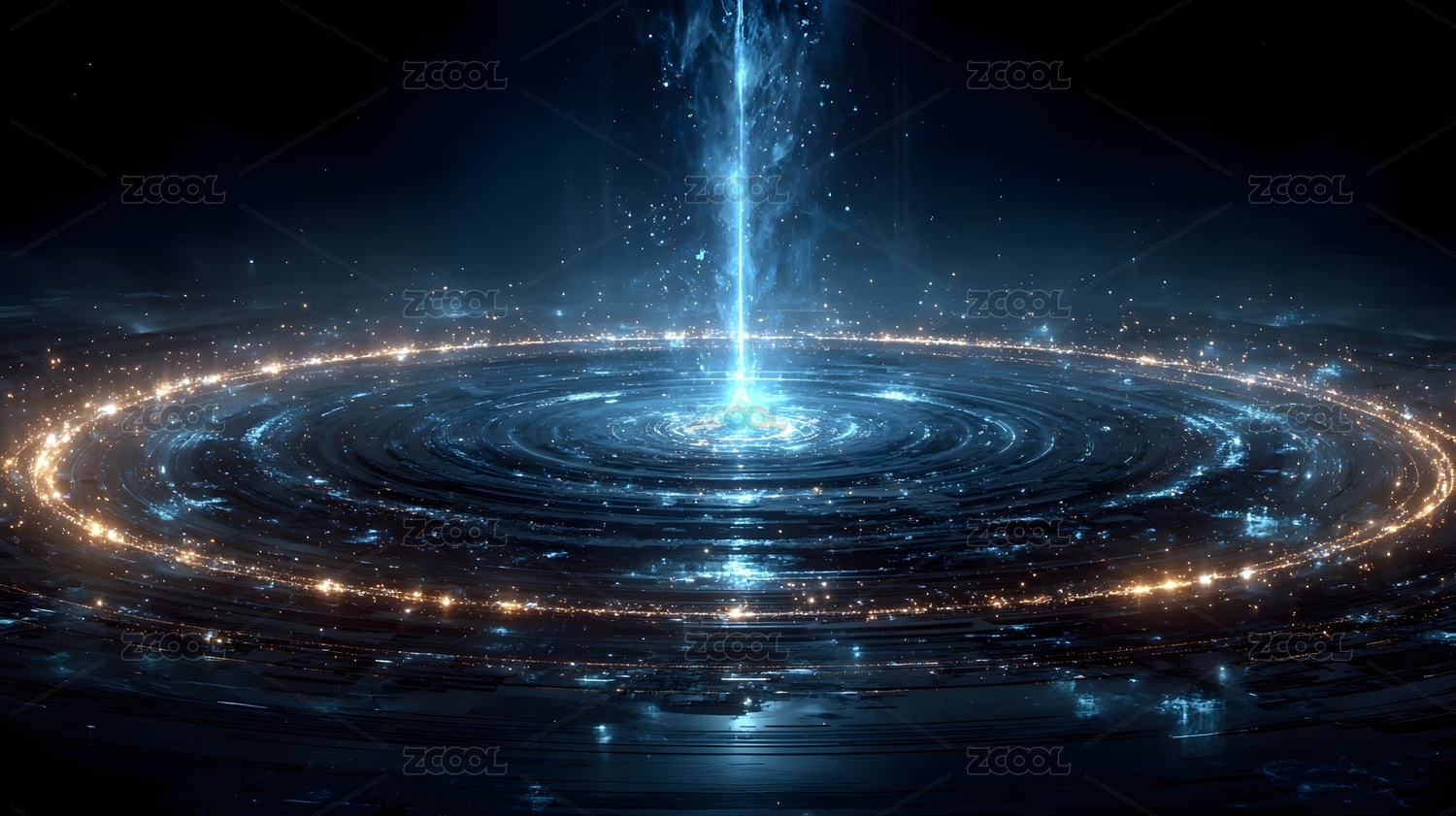 蓝色光环宇宙星云,奇幻光晕深邃空间