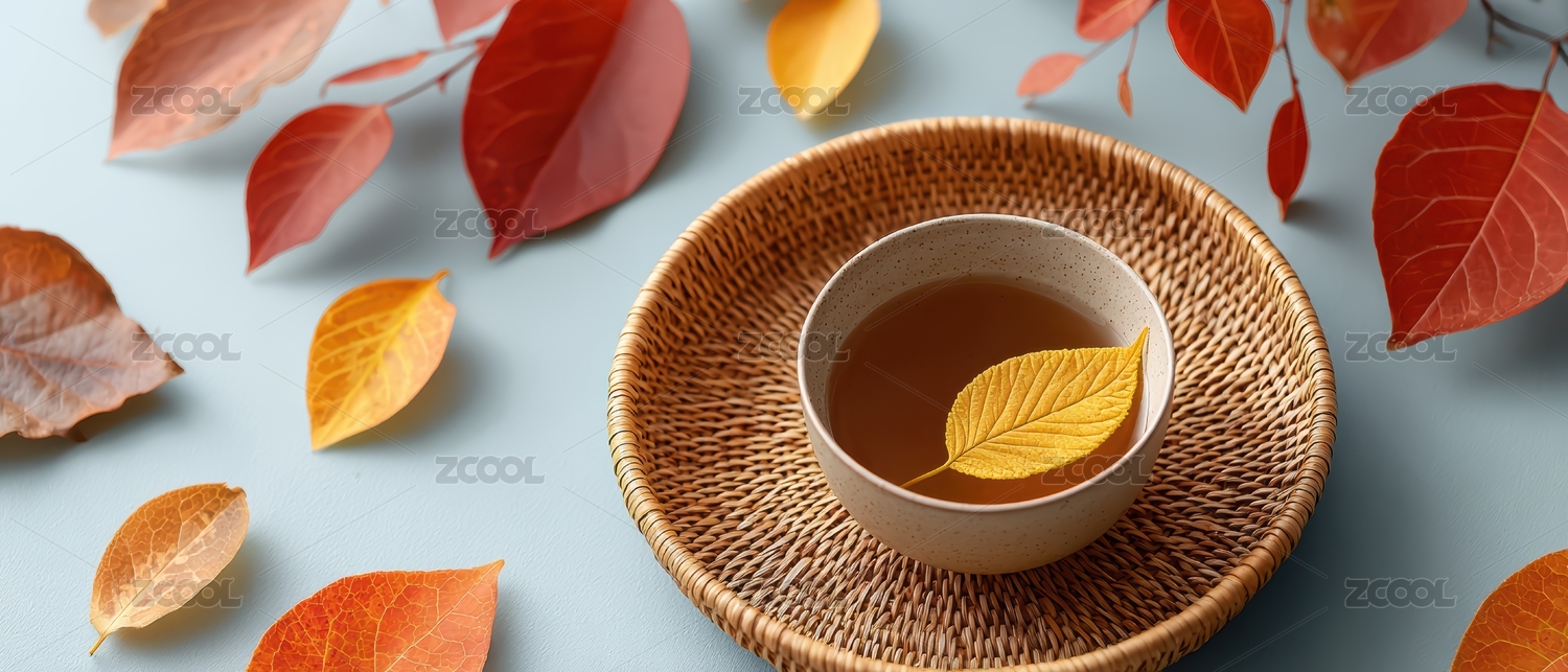 热茶与枫叶的温暖画面