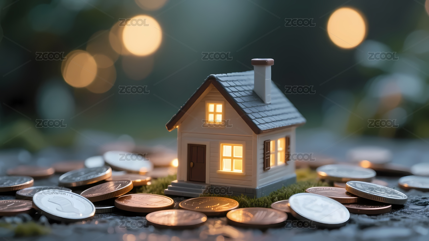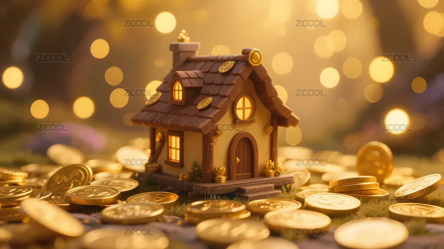 树木,背景,自然,温暖,温馨,小屋,金币,光芒,富足,环绕