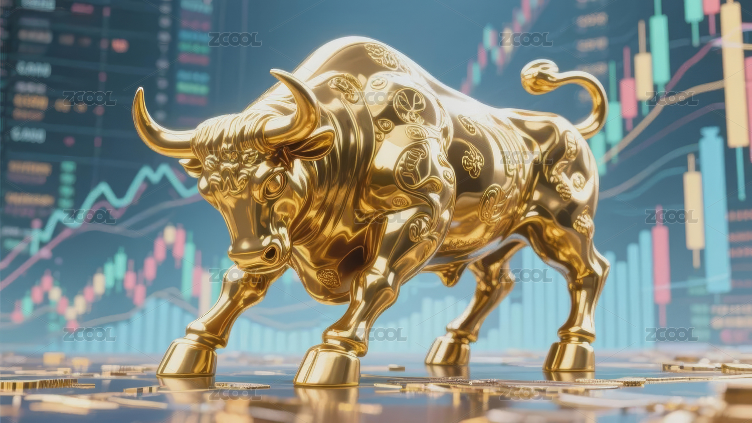 金色牛与股市图表