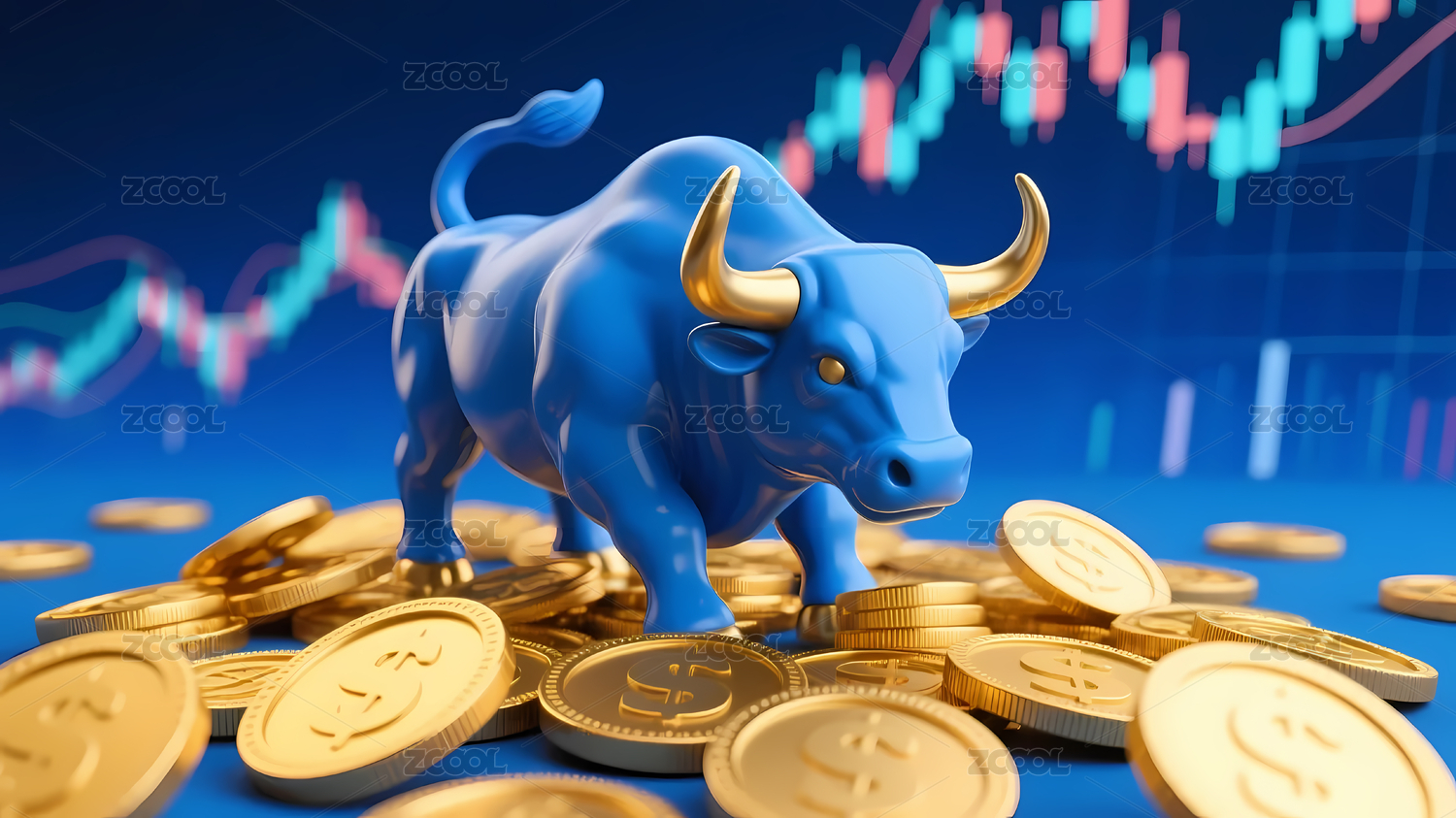 蓝色牛配股市图金币