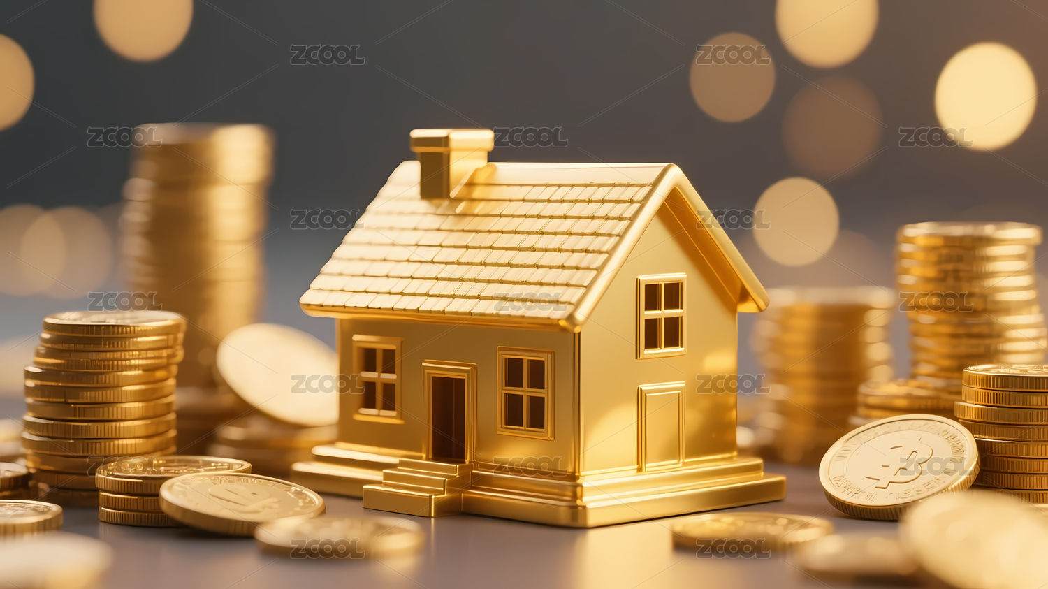 背景,金色,棕色,温暖,房子,硬币,财富,光斑,模型,象征