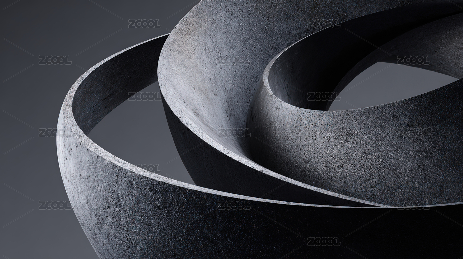 白底黑色螺旋波纹特写抽象图形3D插画立体