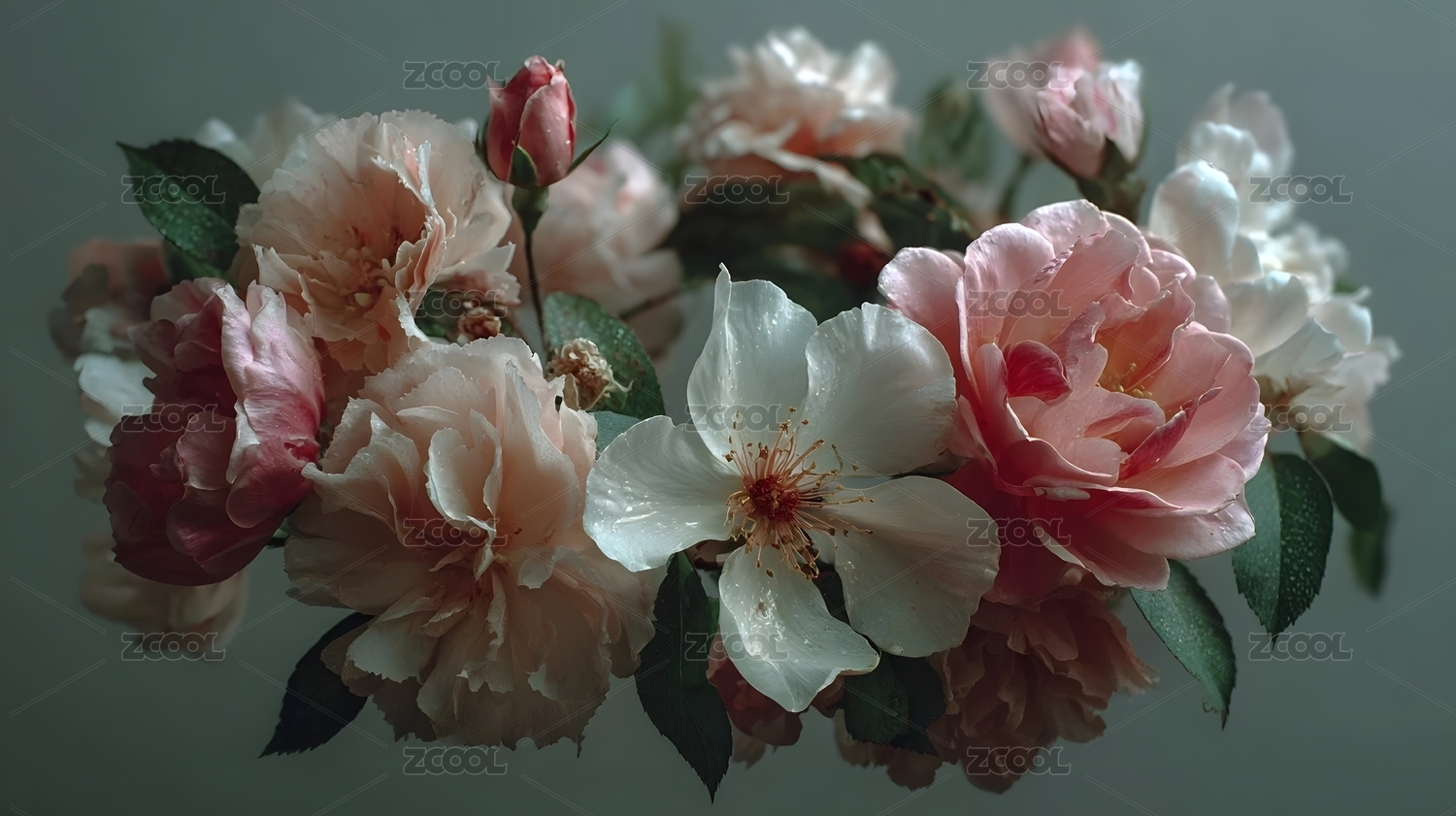 淡雅粉白花朵枝蔓,精美细致三维立体质感
