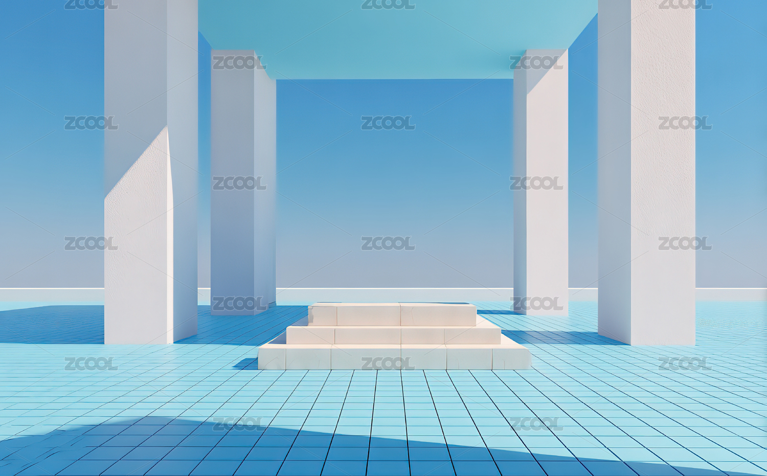 简约,光线,建筑,白色,蓝天,干净,阳台,柱子,阳光,栅栏